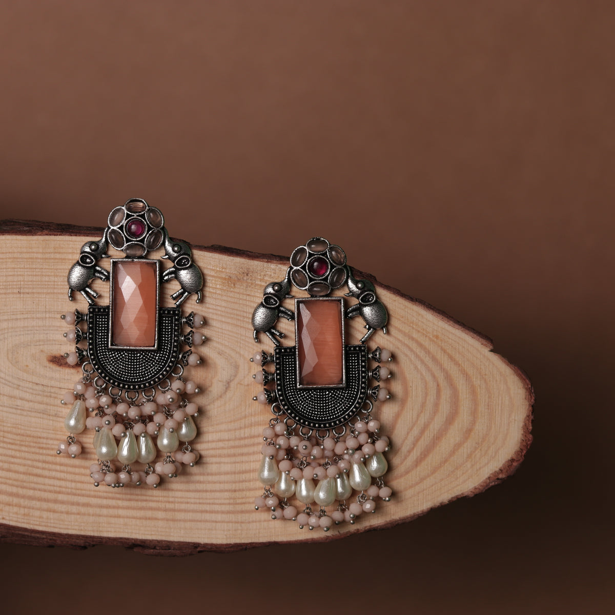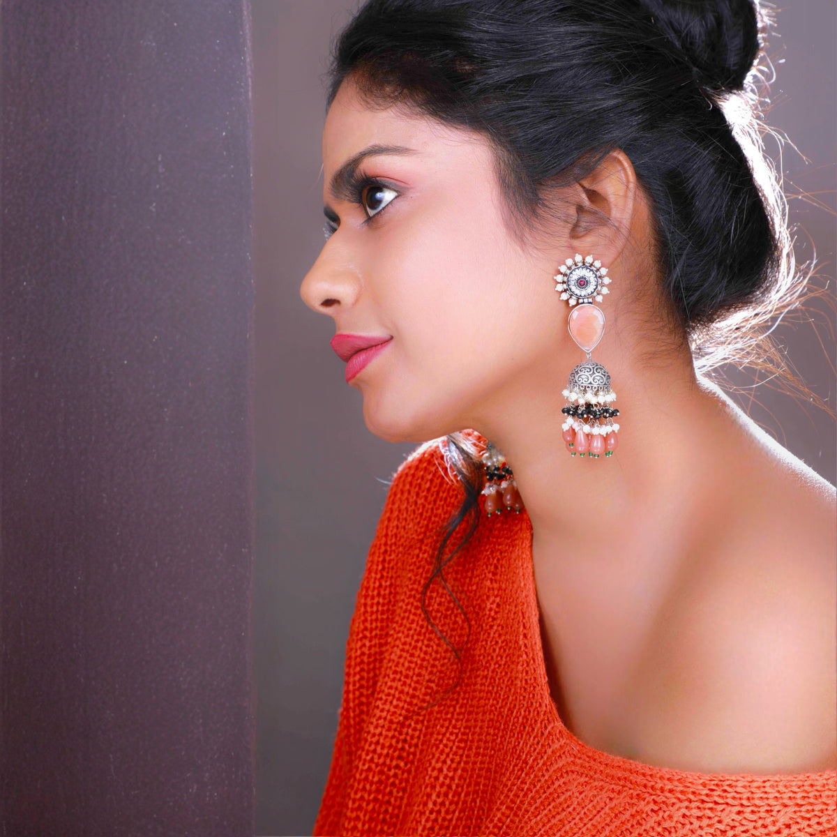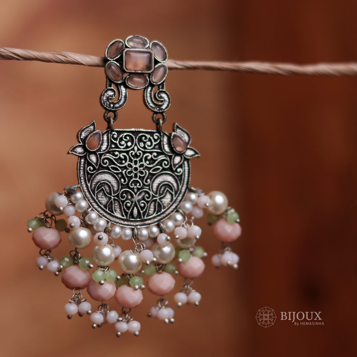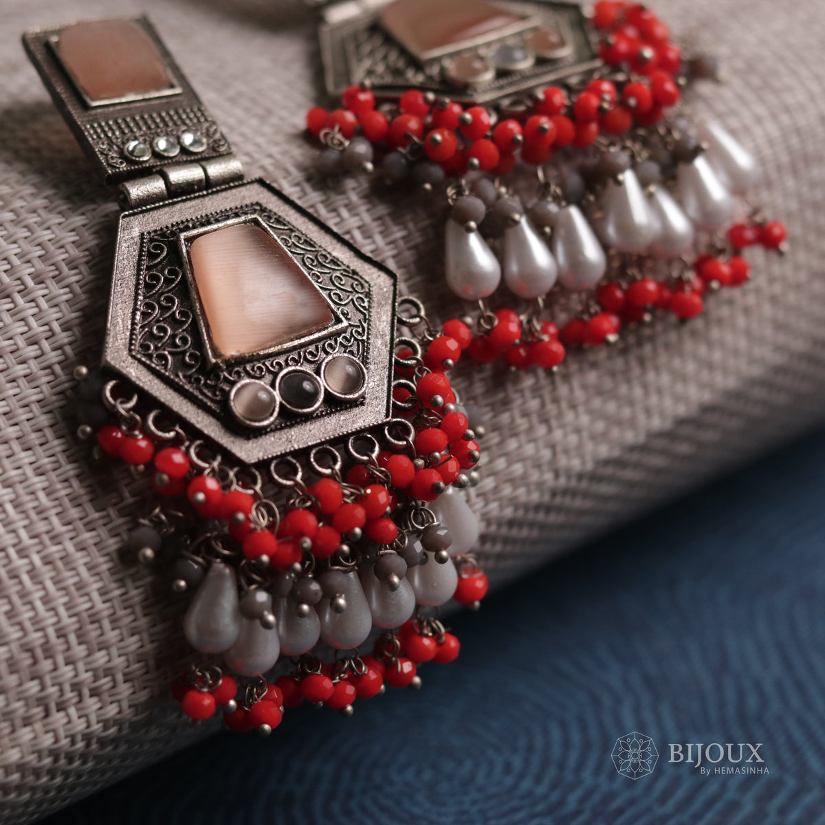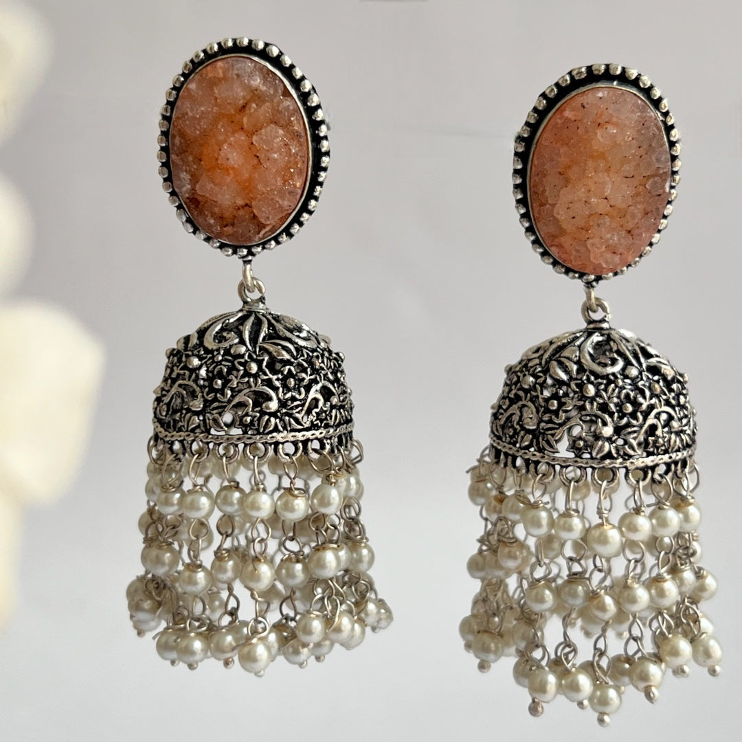 SPLENDOR DRUZY AND AGATE STONE SEMI-HANDMADE OXIDIZED JHUMKA ER54