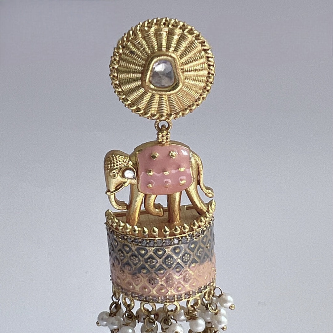 OLIFANT POLKI STUDDED GRACEFUL JHUMKAS-HAND PAINTED-ER98