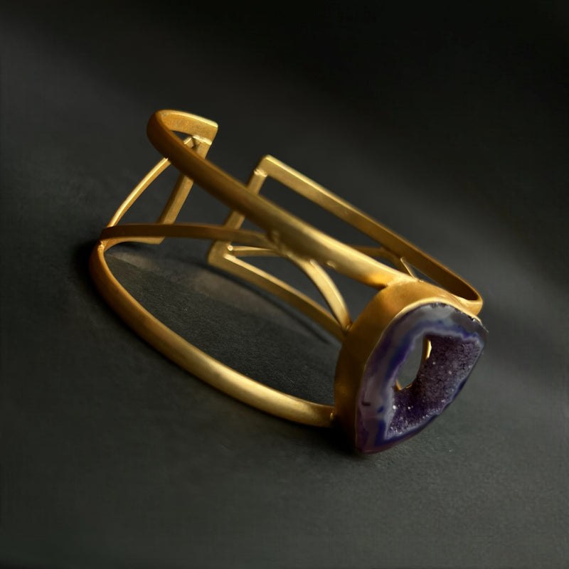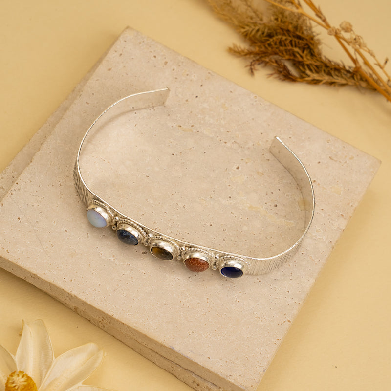 NIRALYA UNFORMED PREMIUM HAND HAMMERED AND HANDMADE STONE BANGLE CUFF BR11