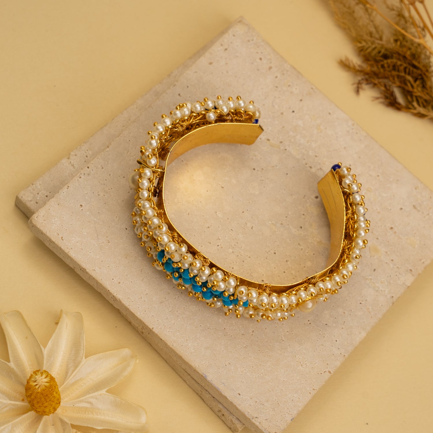 KINNE HAND HAMMERED AND HANDMADE GOLD TONED CLASSIC PEARL BRACELETS BR17