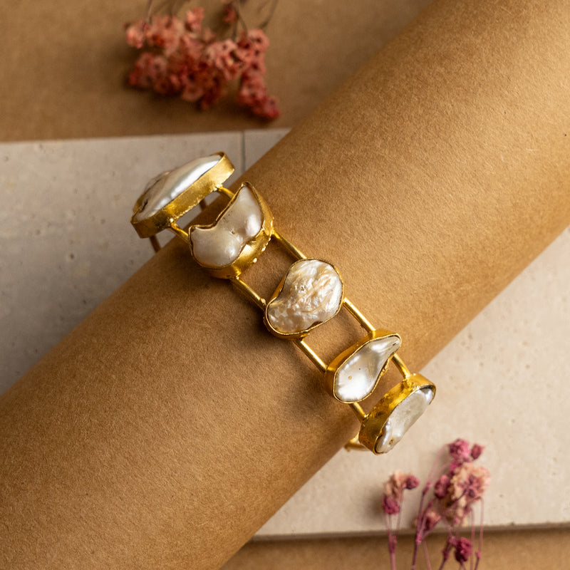 KETA HAND HAMMERED AND HANDMADE GOLD TONED CLASSIC MOP BRACELETS BR36