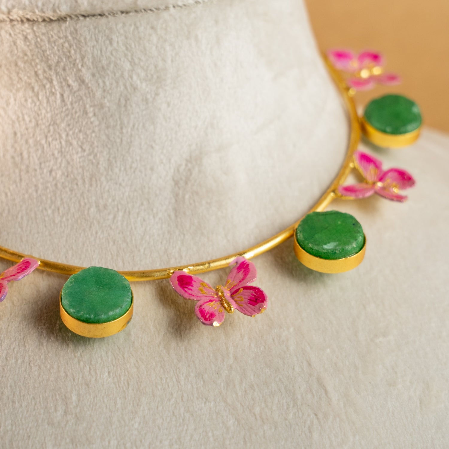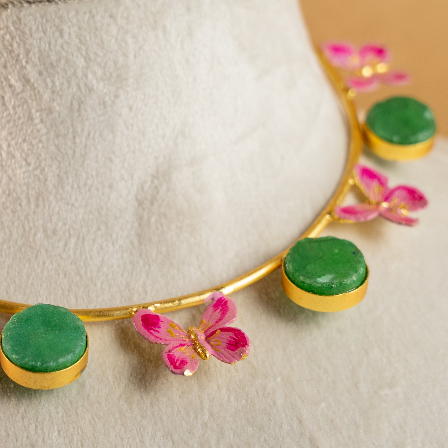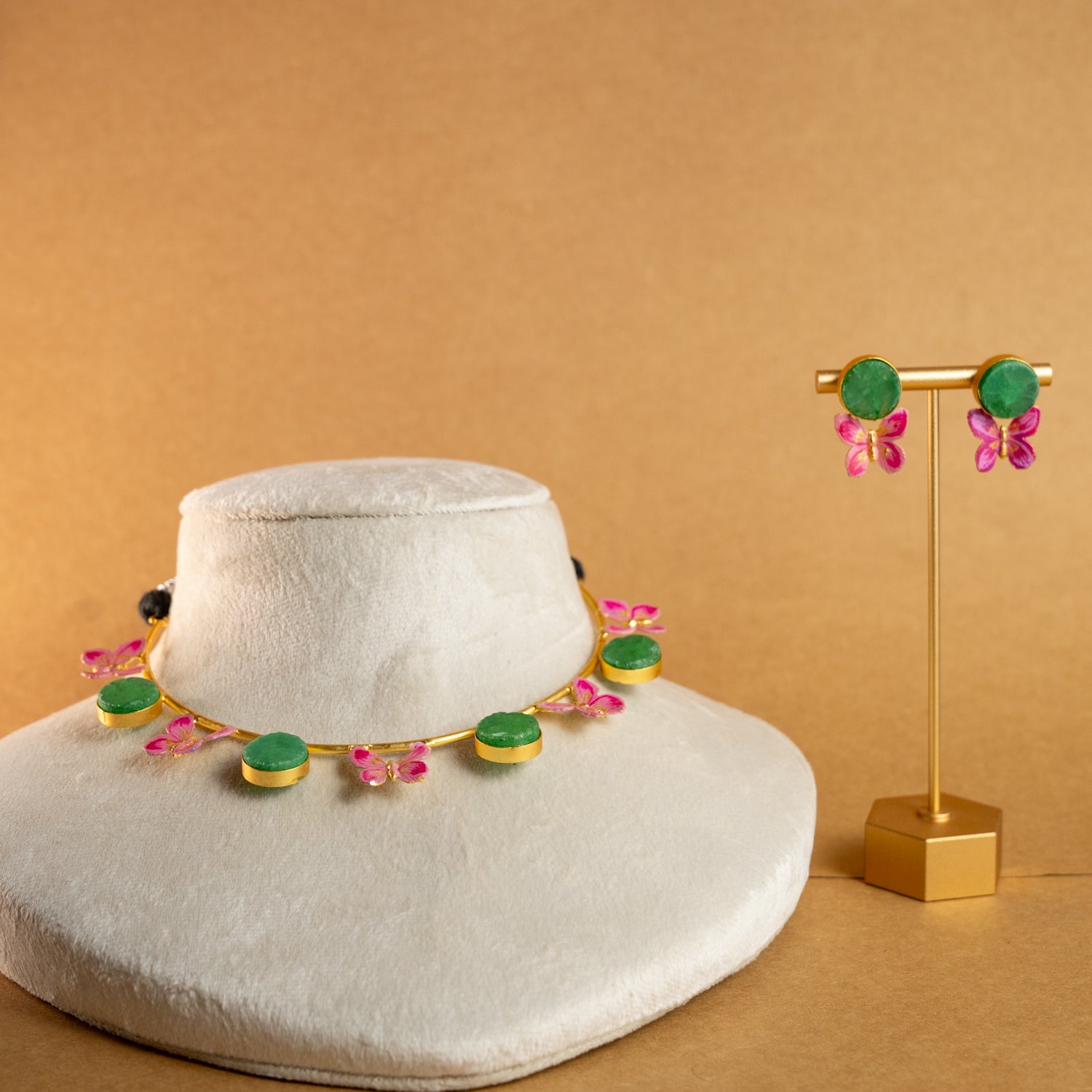 ARELY BIJOUX RAW STONE HANDMADE HANDPAINTED HASLI NECKPIECE WITH EARRINGS CH308