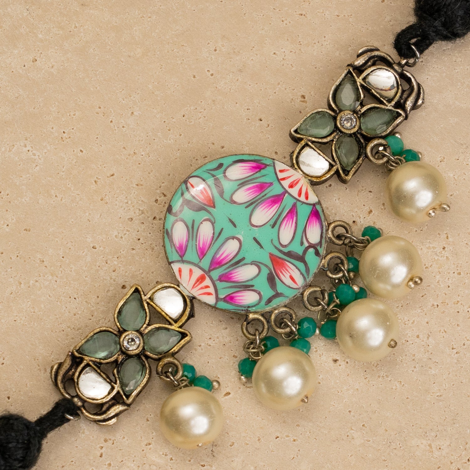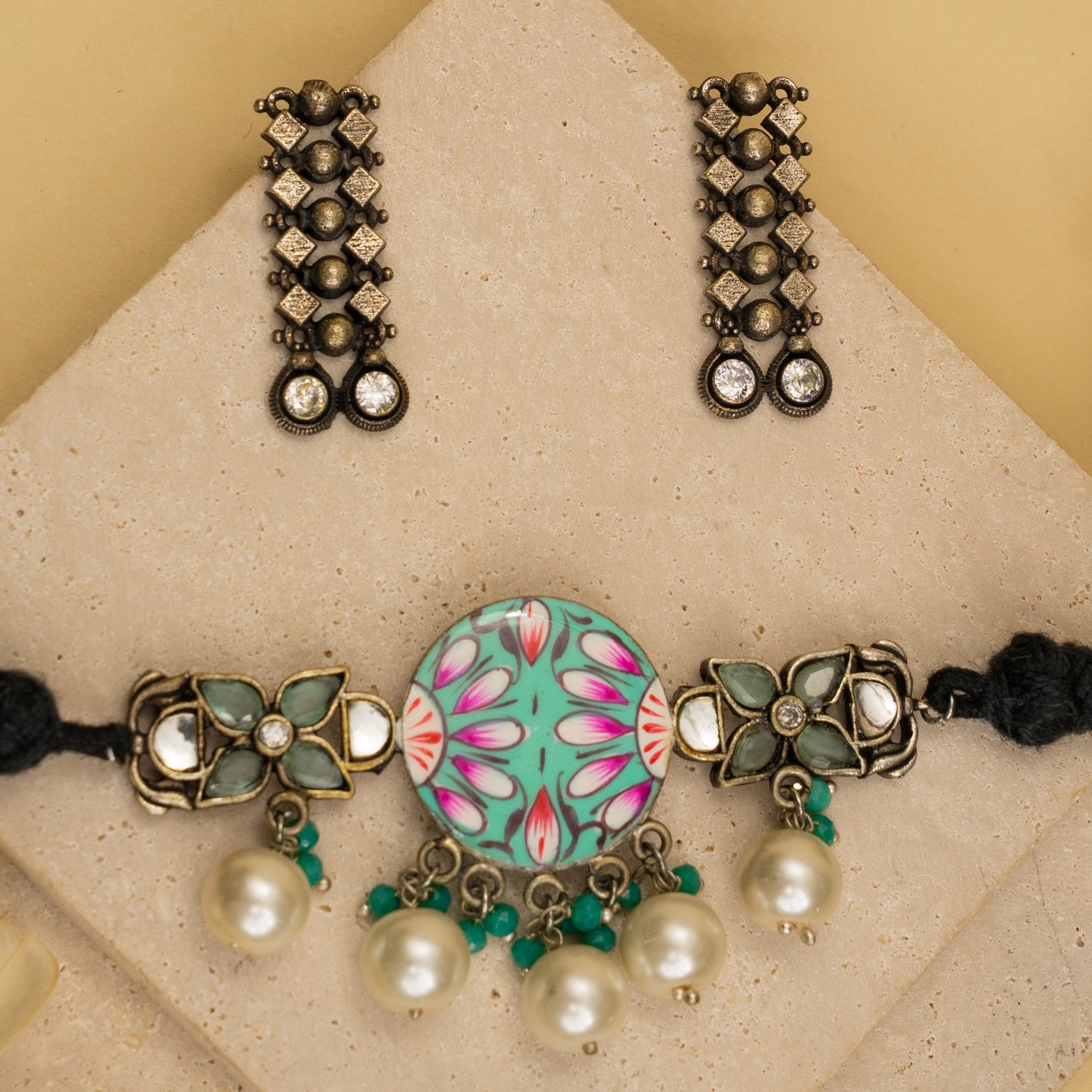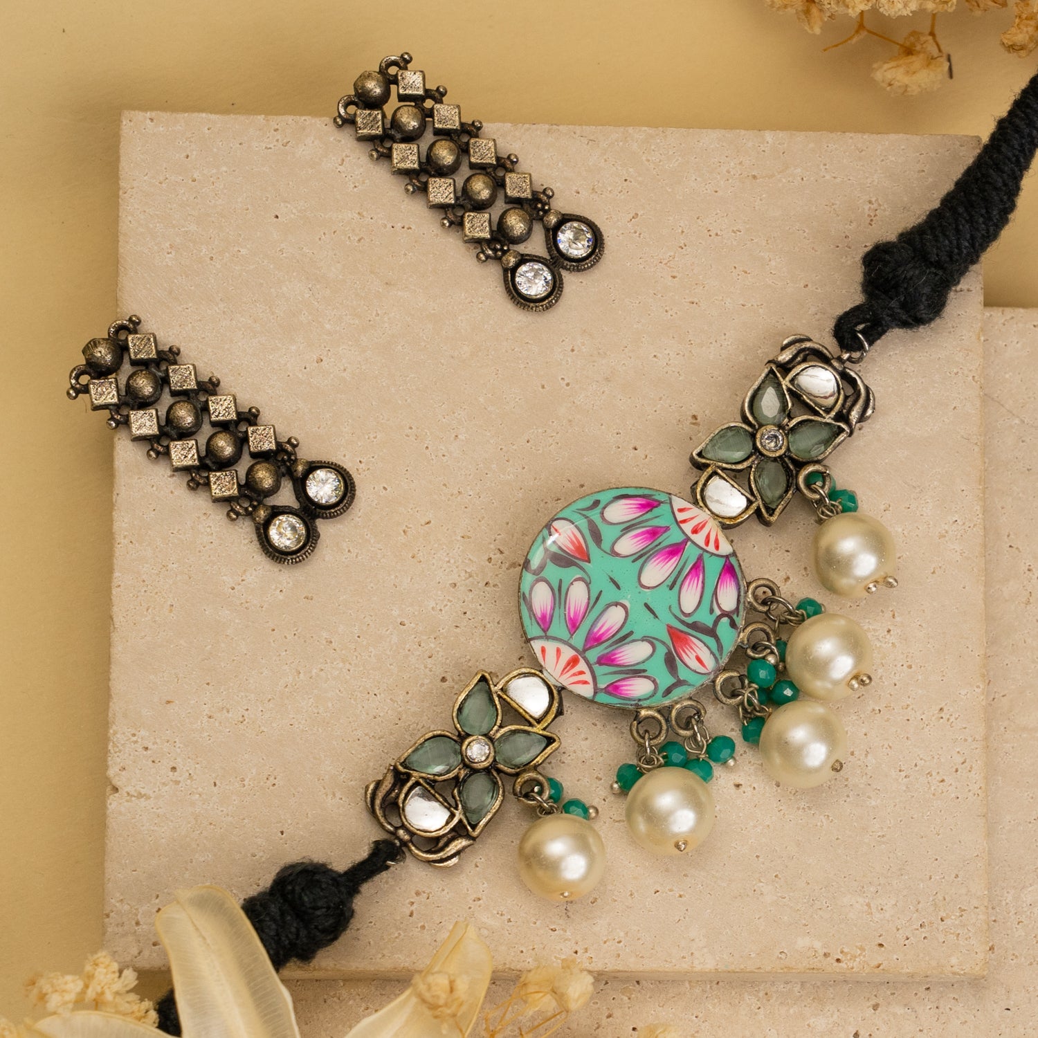 XANTHIA RAW AND RUSTIC SILVER LOOK ALIKE SEMI HANDMADE CHOKER WITH EARRINGS CH330