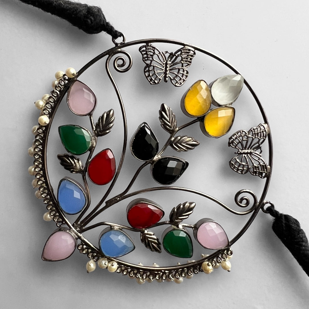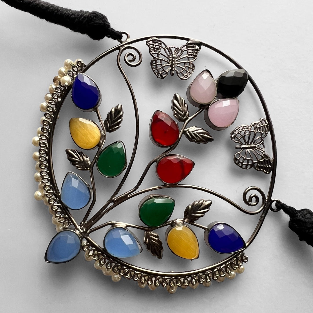 VIRANA SEMI HANDMADE RAW AND RUSTIC CHOKER/NECKPIECE/NECKLACE WITH EARRINGS CH51