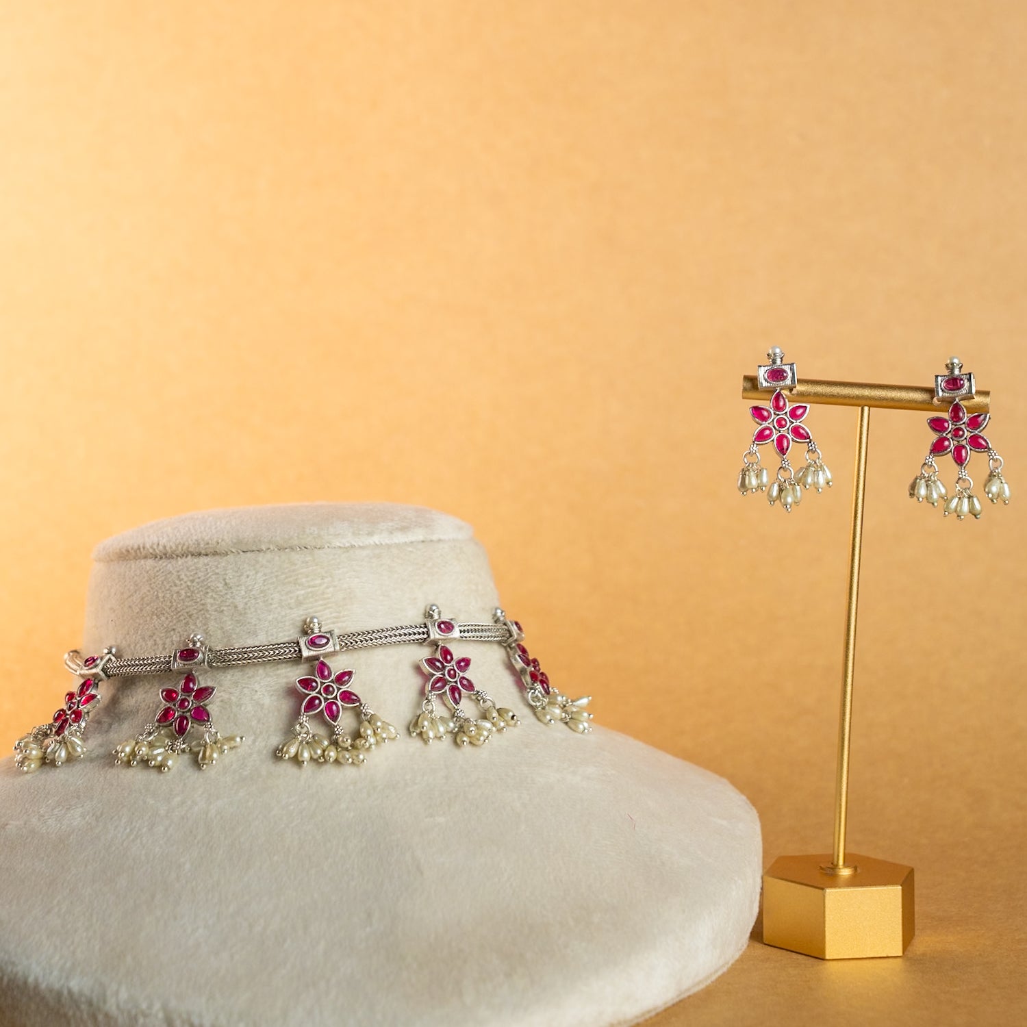 EMILY BIJOUX OXIDIZED ATTIYAL NECKPIECE/CHOKER WITH EARRINGS CH322