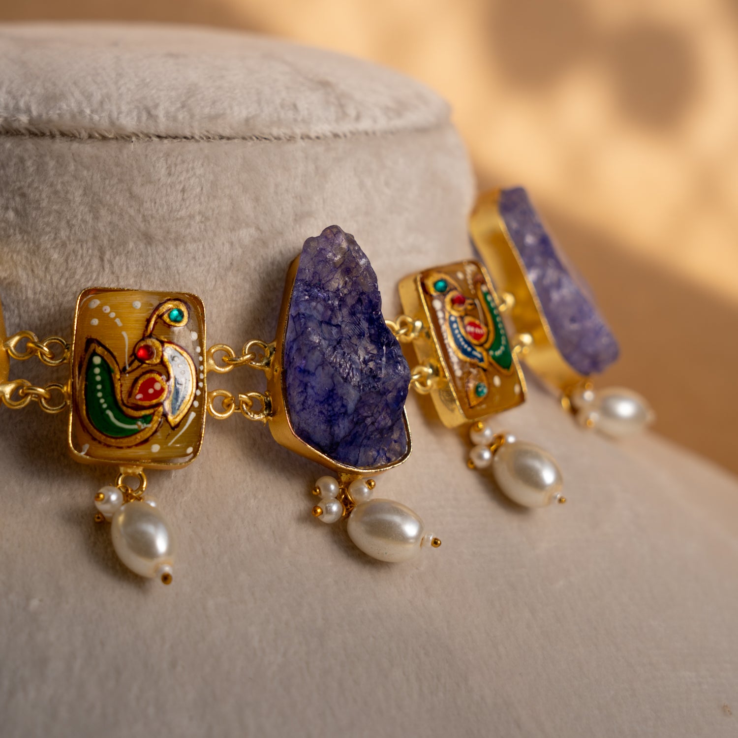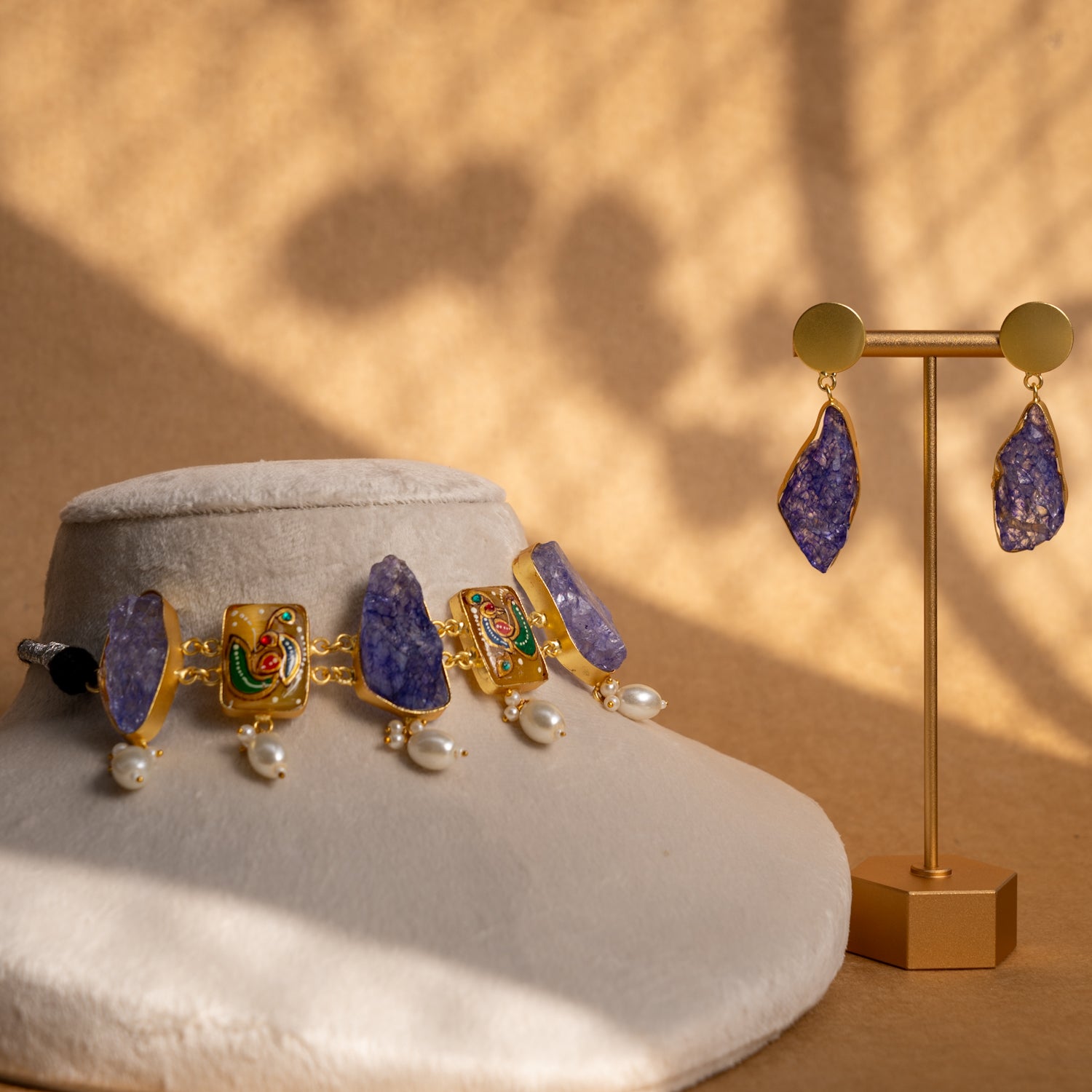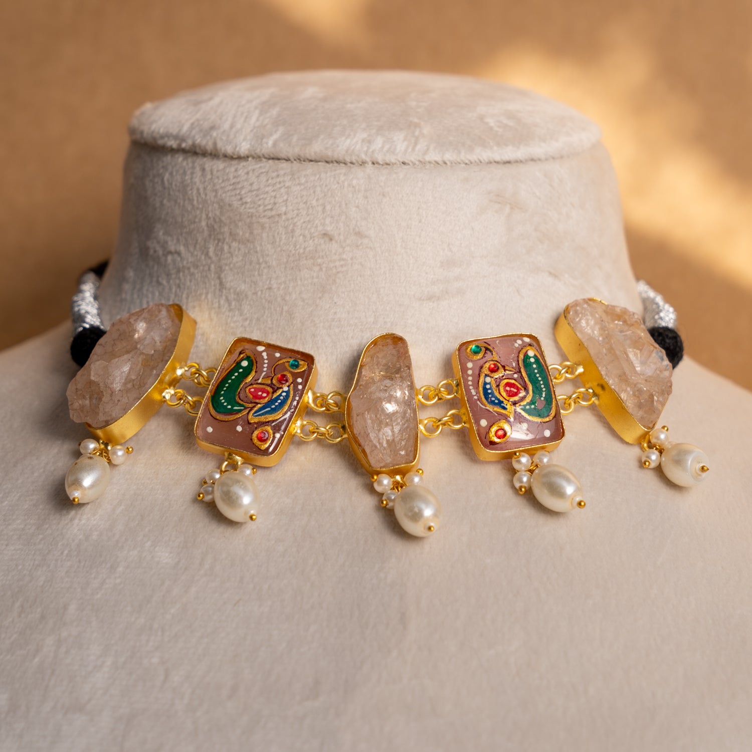 LIYA HANDMADE RAW STONE AND HAND PAINTED CHOKER WITH EARRINGS CH305