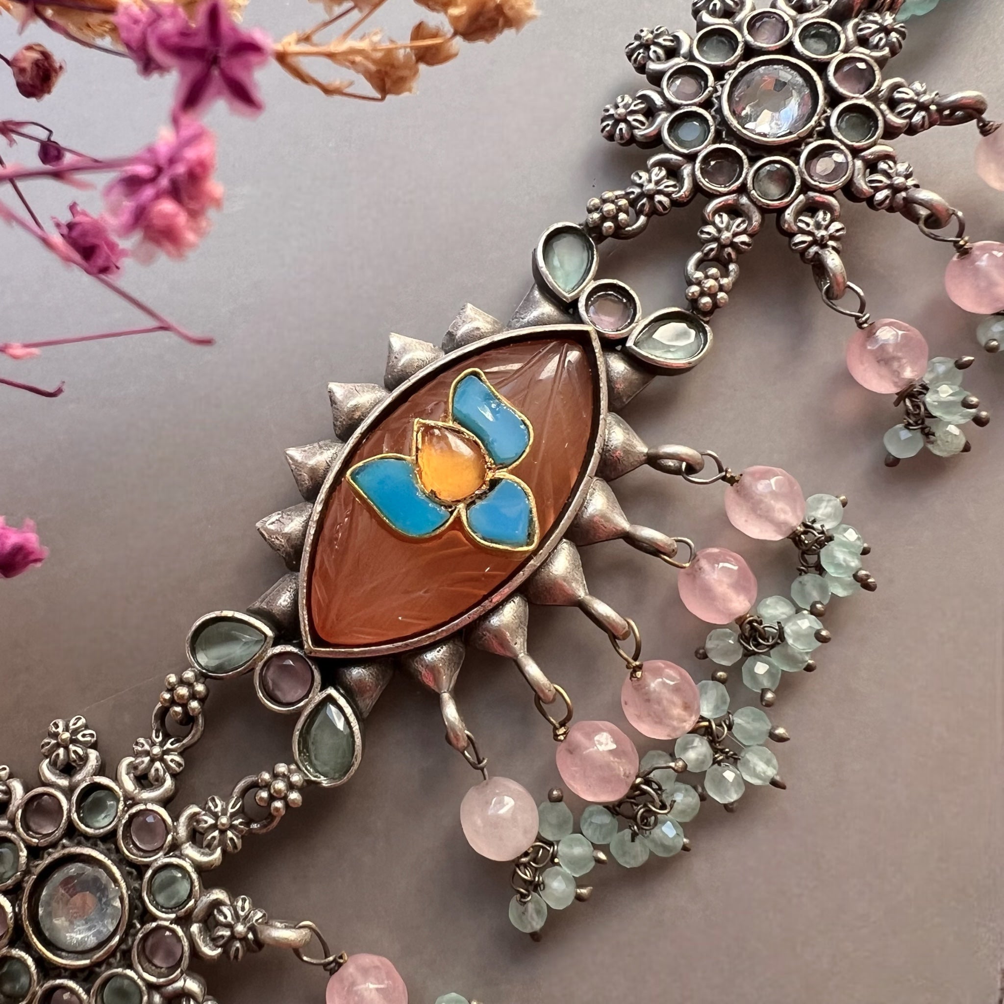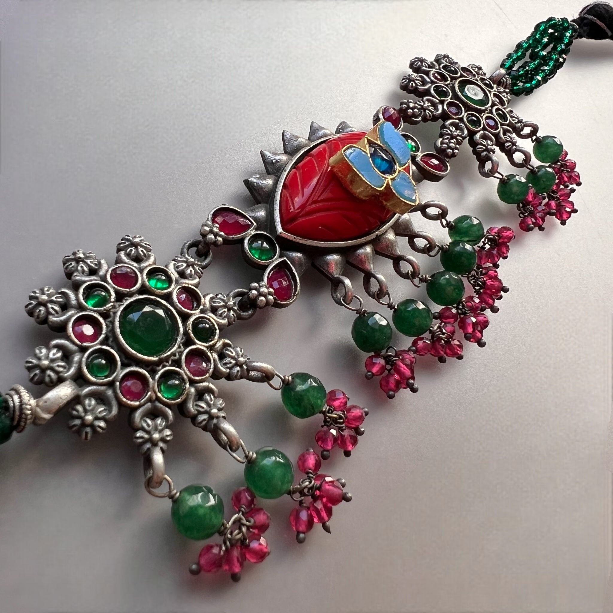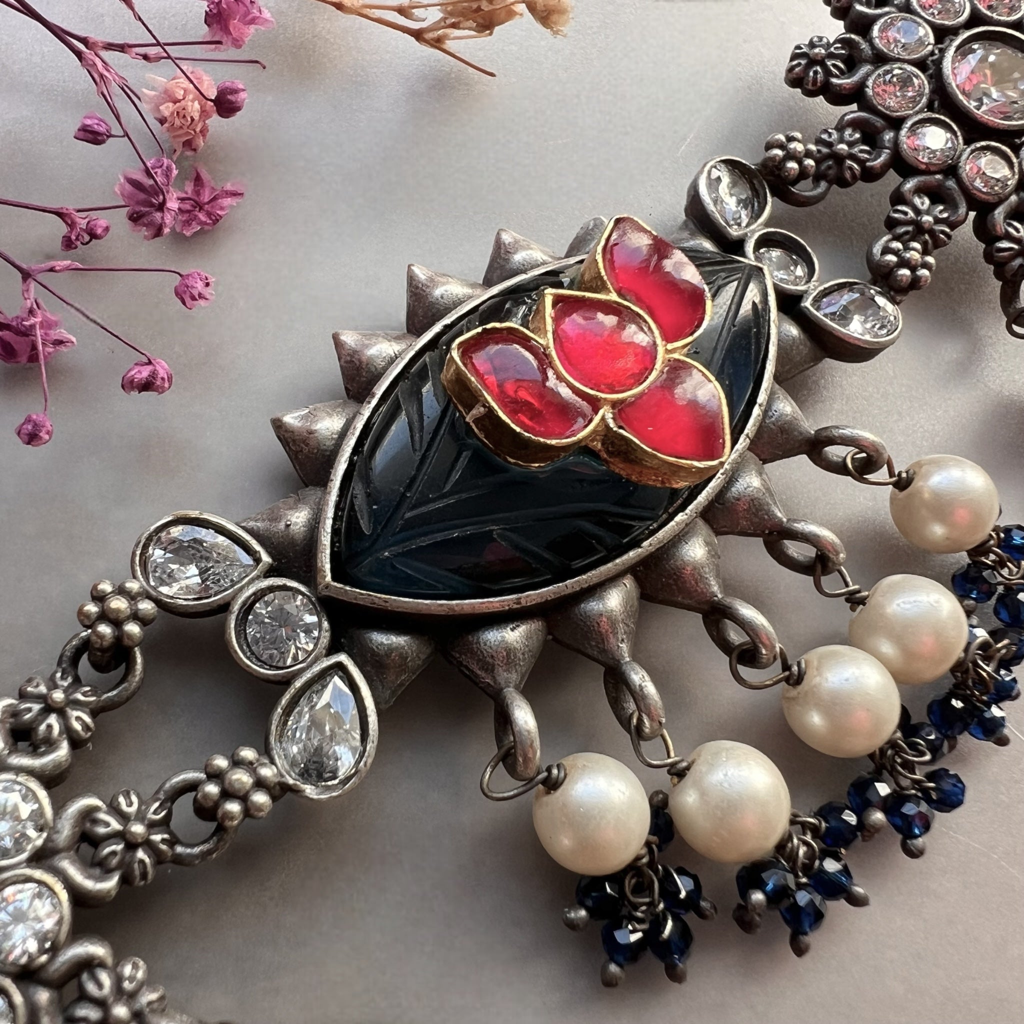 MEDHA SILVER LOOK ALIKE AND RUSTIC FINISH SEMI HANDMADE CHOKER WITH EARRINGS CH493