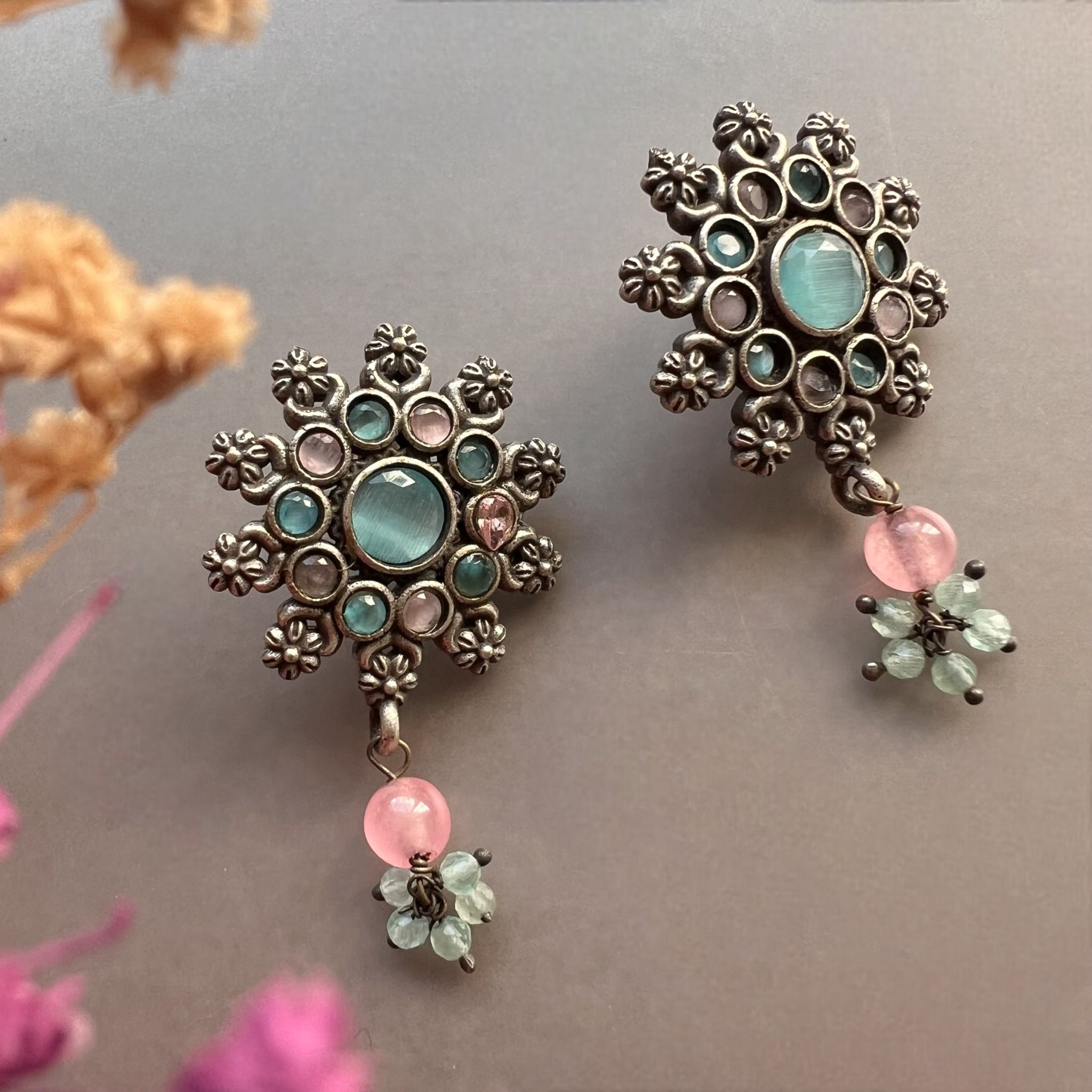 Note: The color and design in the reference image may be slightly different from the actual product. Since these earrings are handmade, the stems may be slightly bent, making each piece unique. Please read the care instructions before checkout.