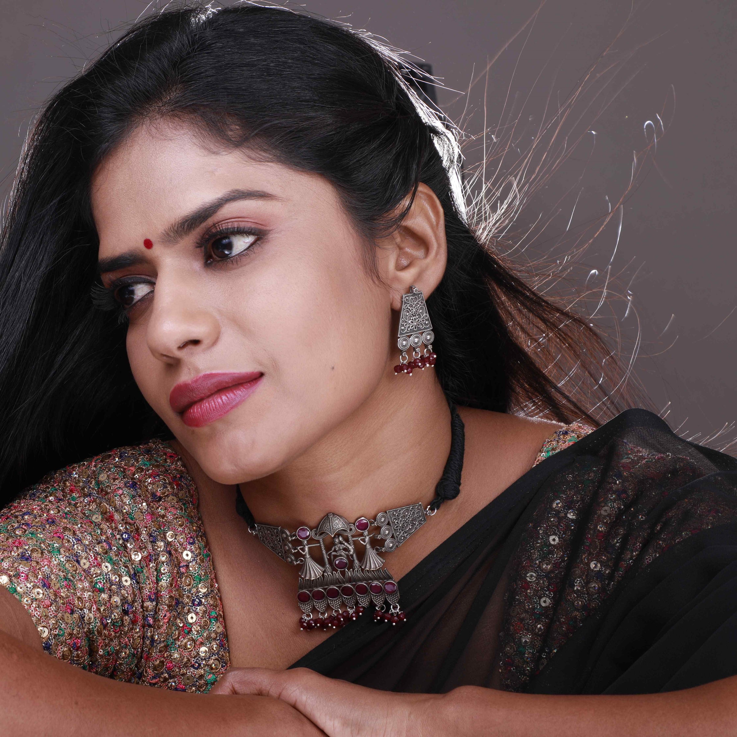 DYLA SILVER LOOK ALIKE RAW AND RUSTIC SEMI HANDMADE RAW STRING CHOKER / NECKPIECE CH54