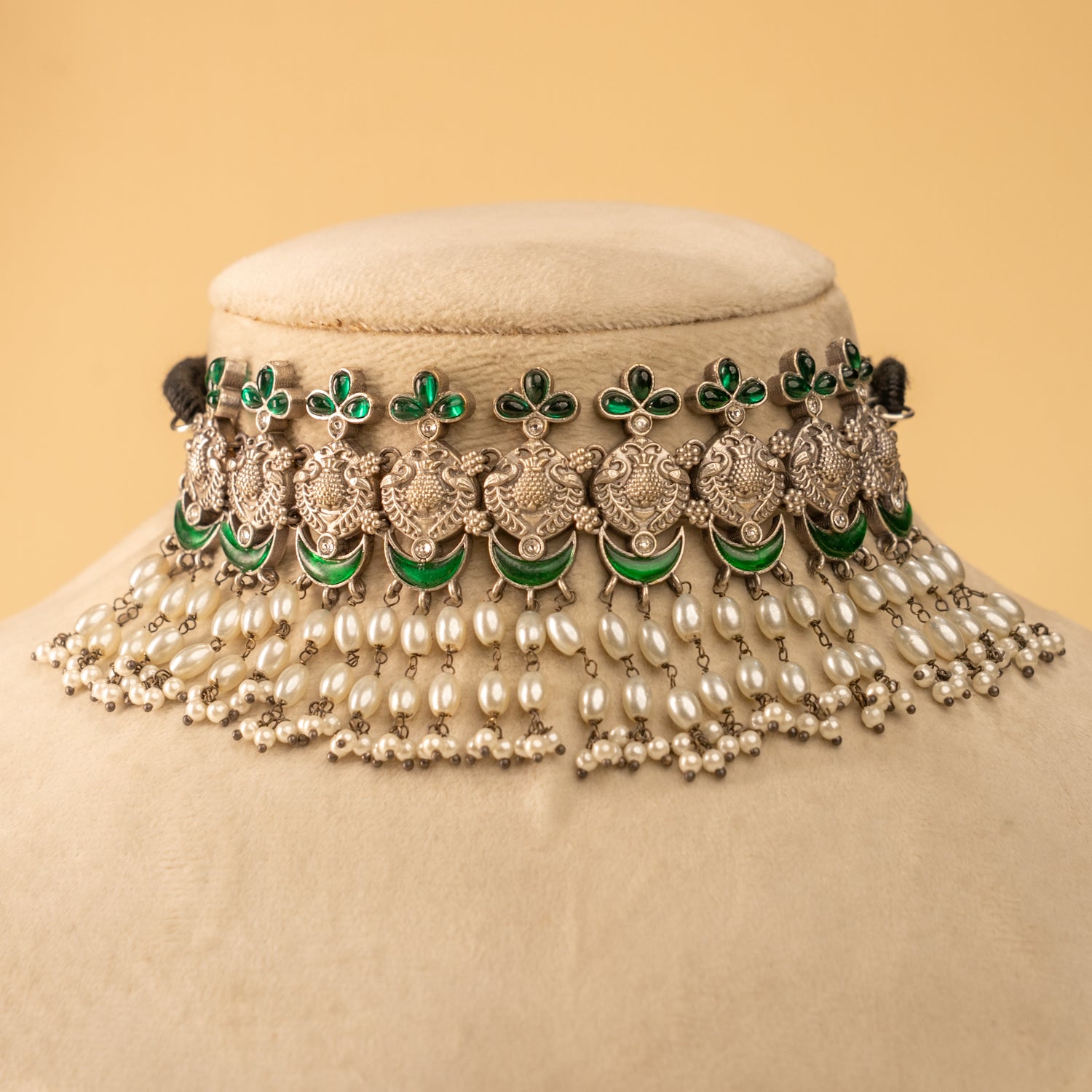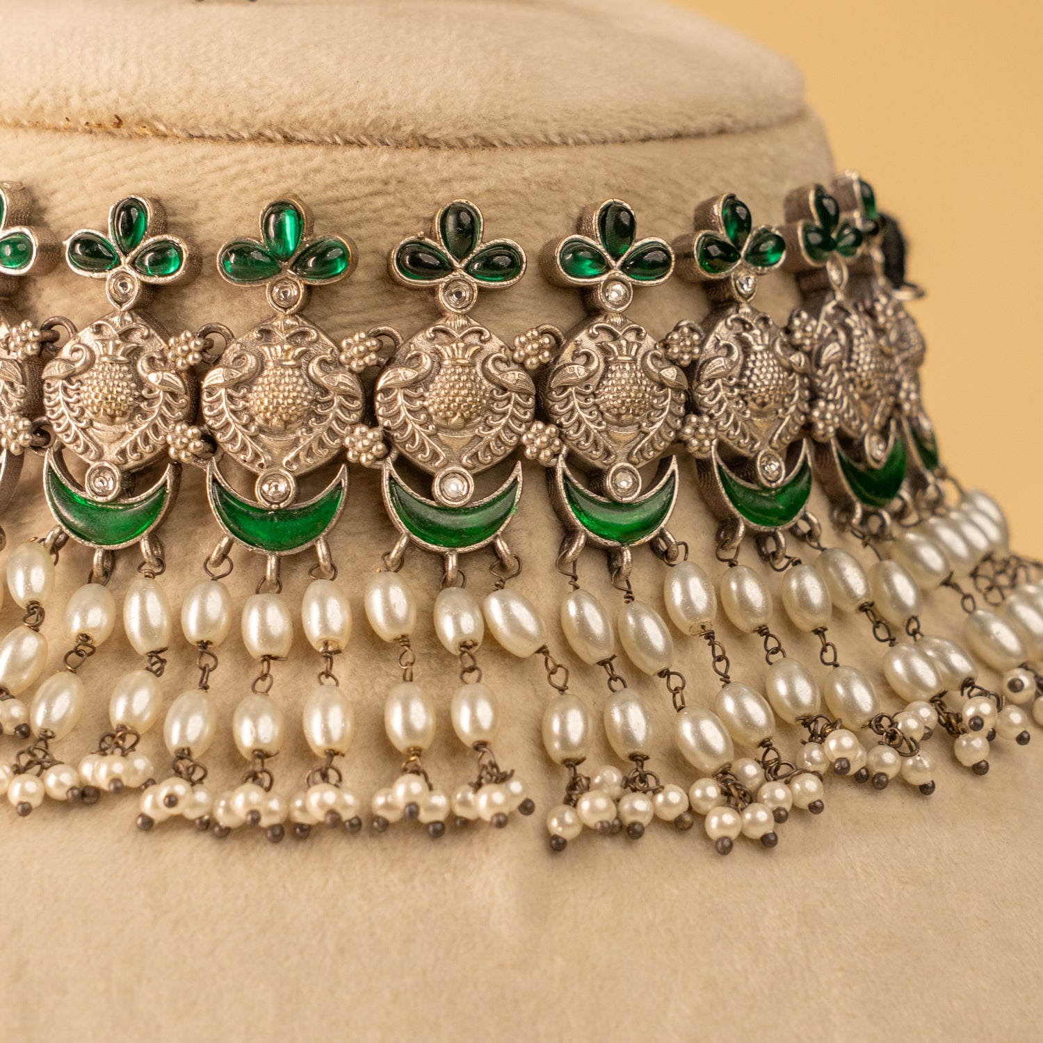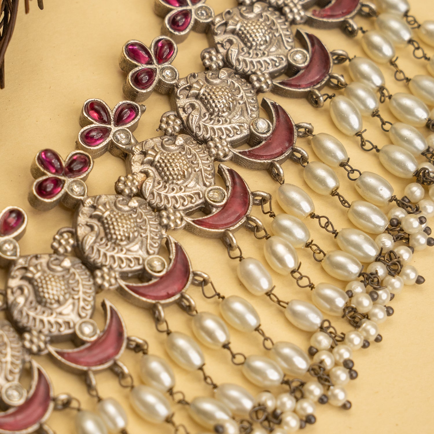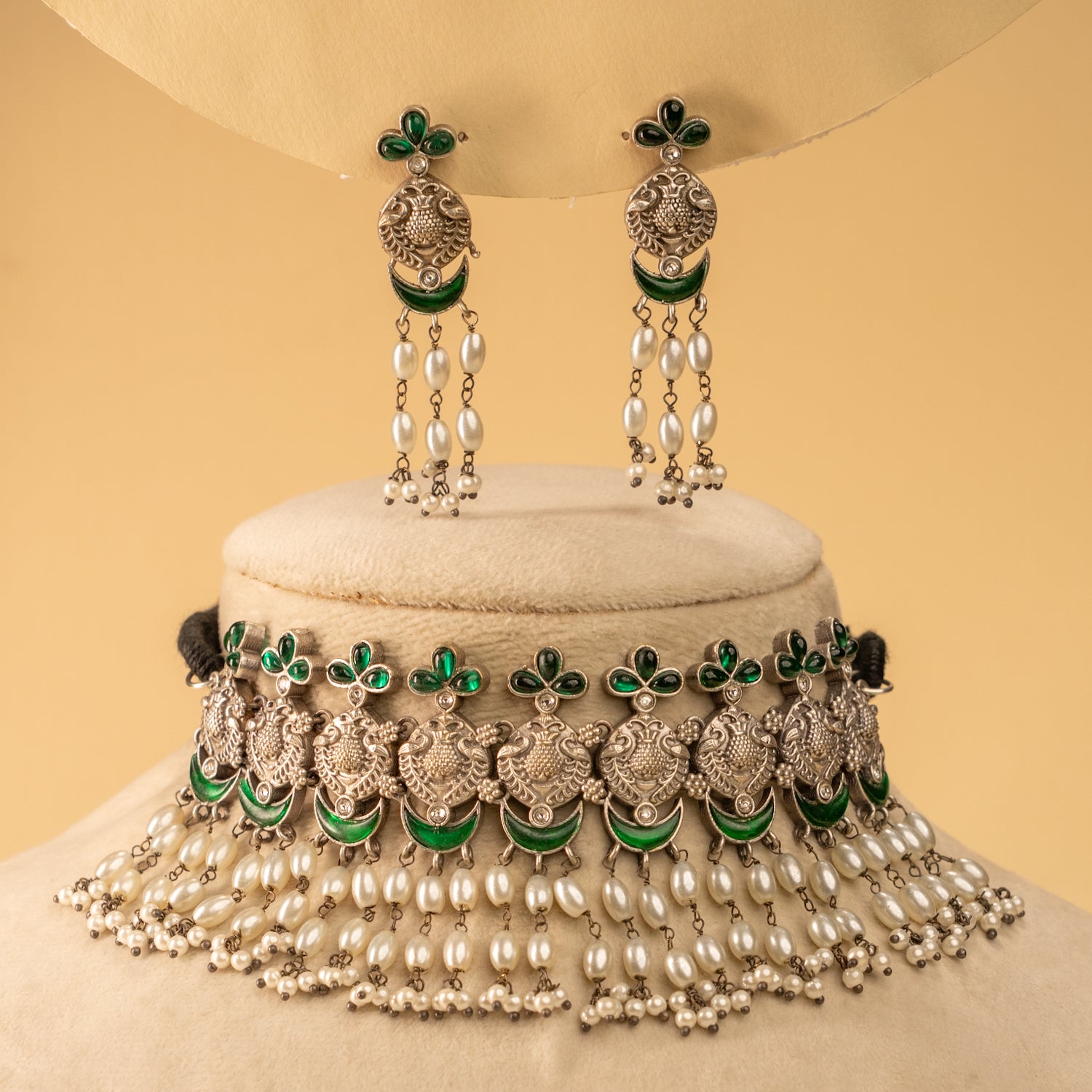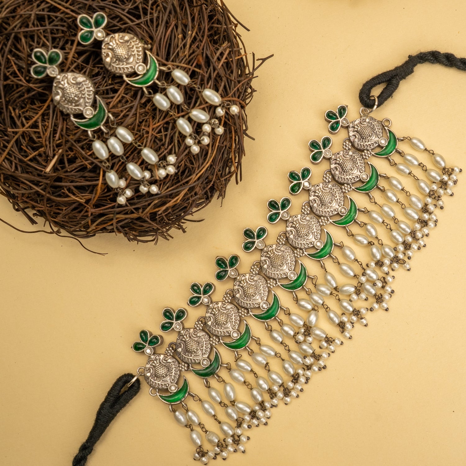 VIOLET SEMI HANDMADE BIJOUX PREMIUM RUSTIC FINISH CHOKER WITH EARRING CH517