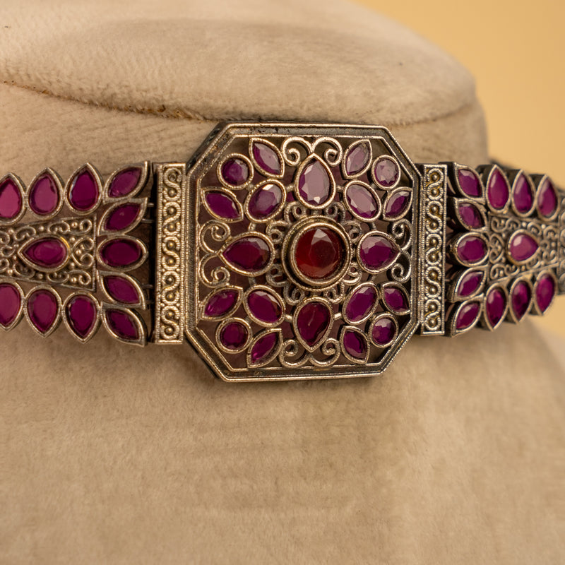 ELLA RAW AND RUSTIC ANTIQUE SEMI HANDMADE CHOKER WITH EARRINGS CH115