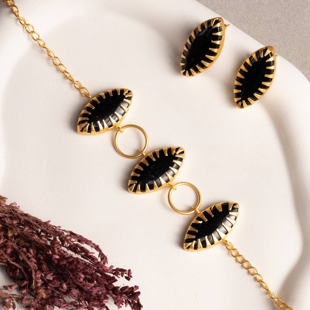 ISABELLA RAW AND RUSTIC BLACK POLISH CHOKER WITH EARRINGS CH473