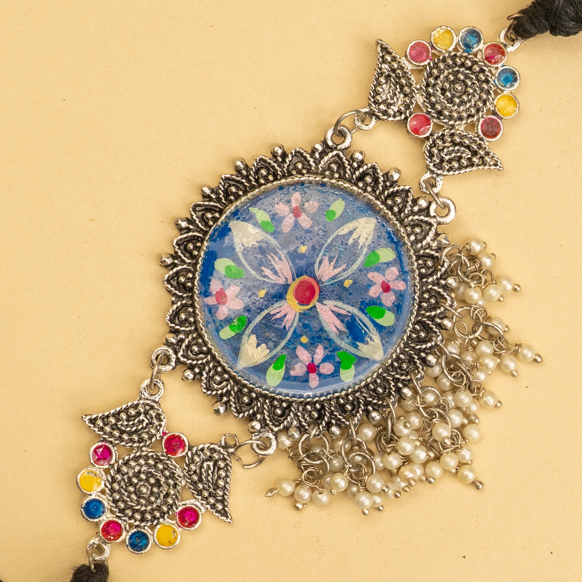 VIDHU HANDMADE HAMMERED UNSHAPED HAND PAINTED CHOKER WITH EARRINGS CH202
