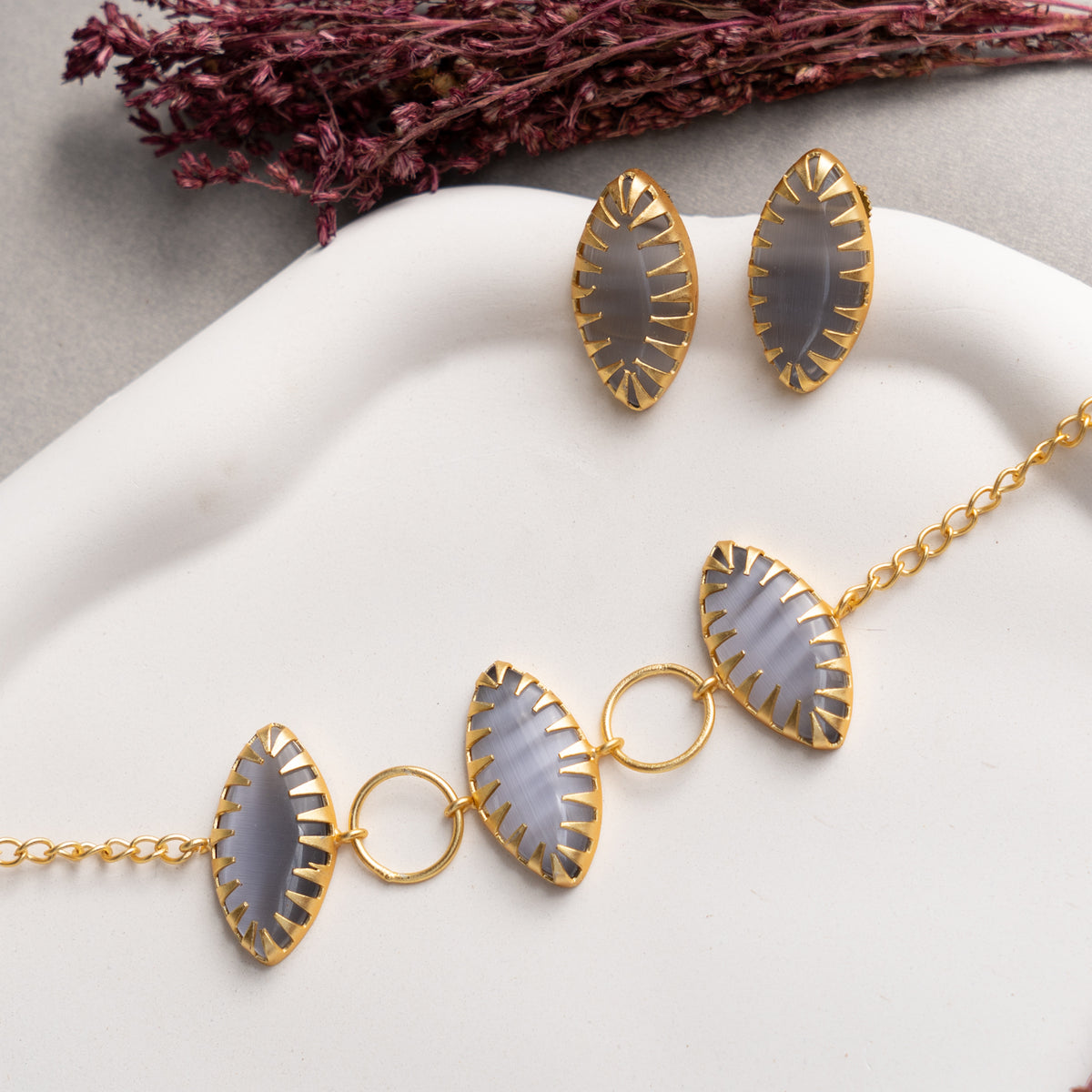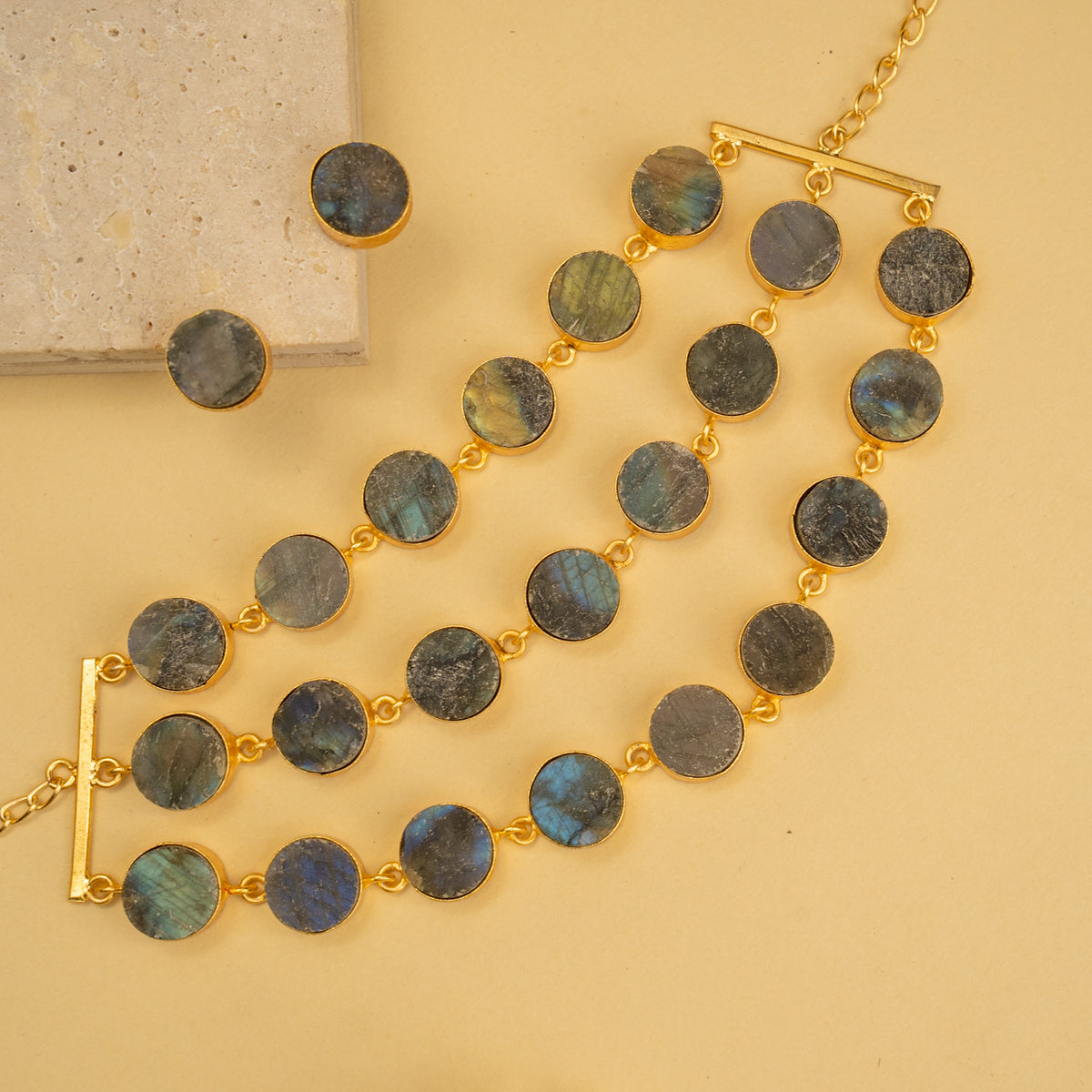 AILANY BIJOUX RAW STONE GOLD TONED 3 LAYERED HANDMADE CHOKER WITH EARRINGS CH428