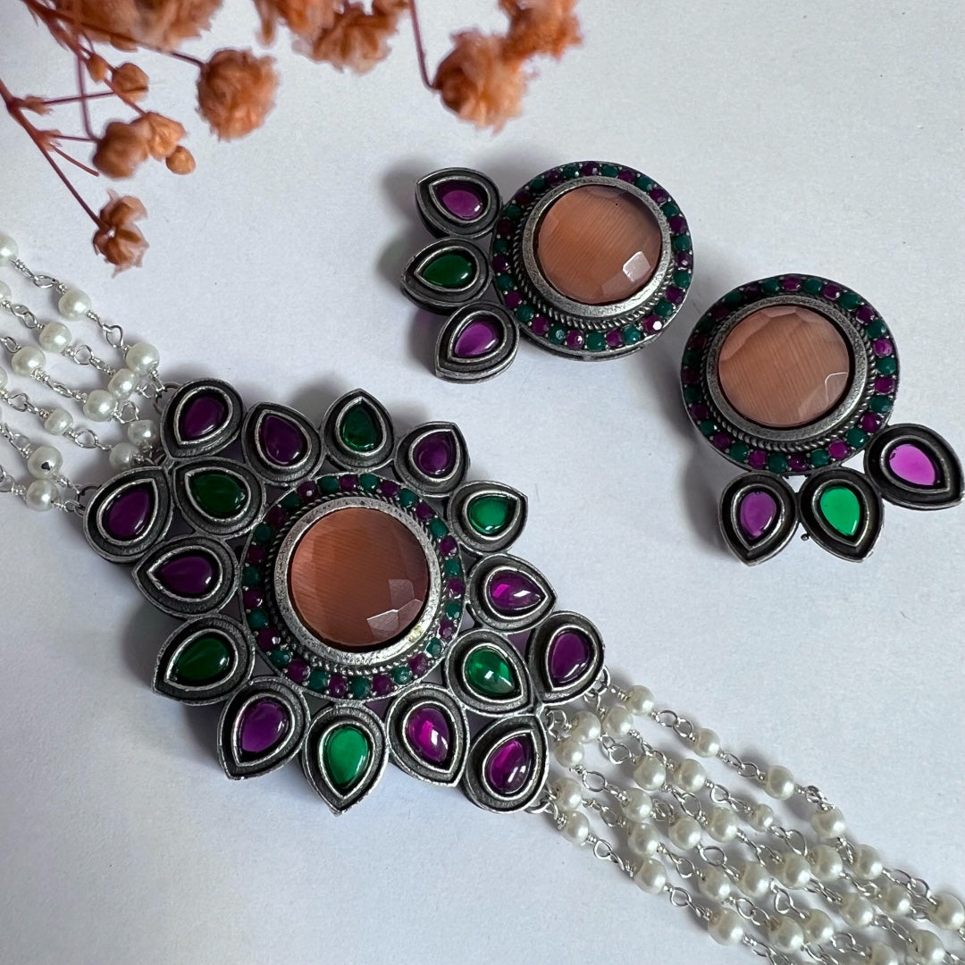 NARUMUGAIYA BIJOUX PREMIUM AND EXCLUSIVE RUSTIC HANDMADE CHOKER WITH EARRINGS CH300