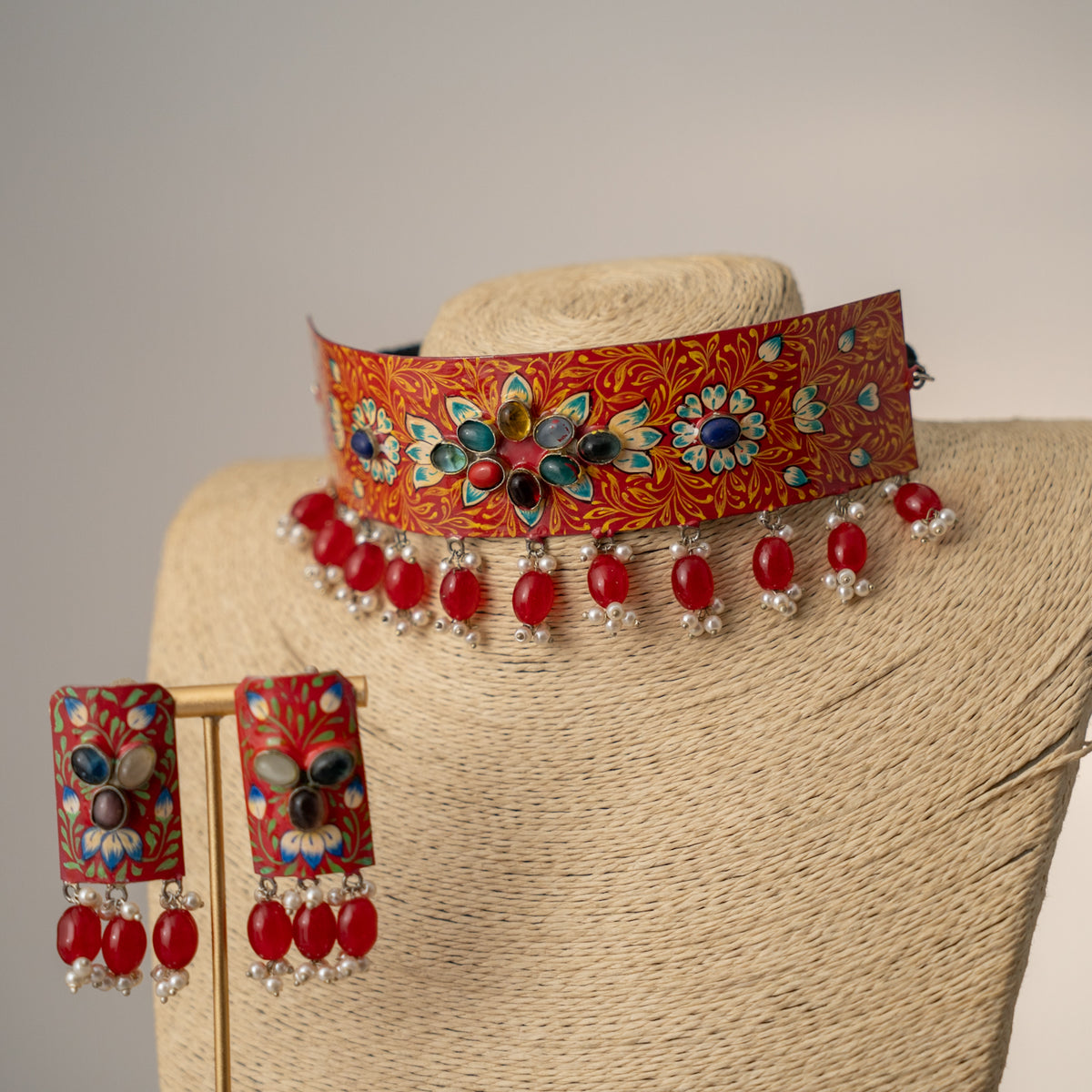 VIDHU HANDMADE HAMMERED UNSHAPED HAND PAINTED CHOKER WITH EARRINGS CH202