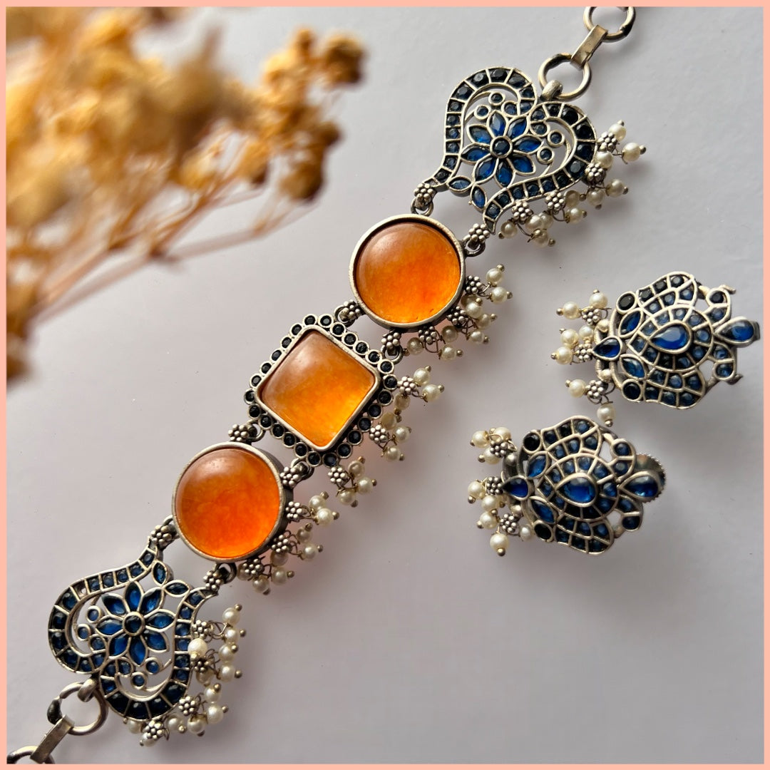RYLEE BIJOUX PREMIUM AND EXCLUSIVE RUSTIC FINISH HANDMADE CHOKER WITH EARRINGS CH303