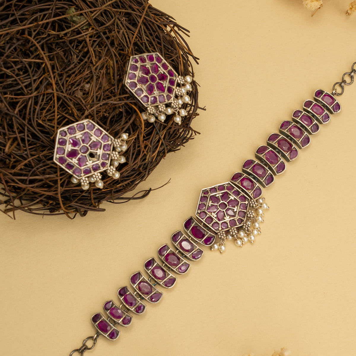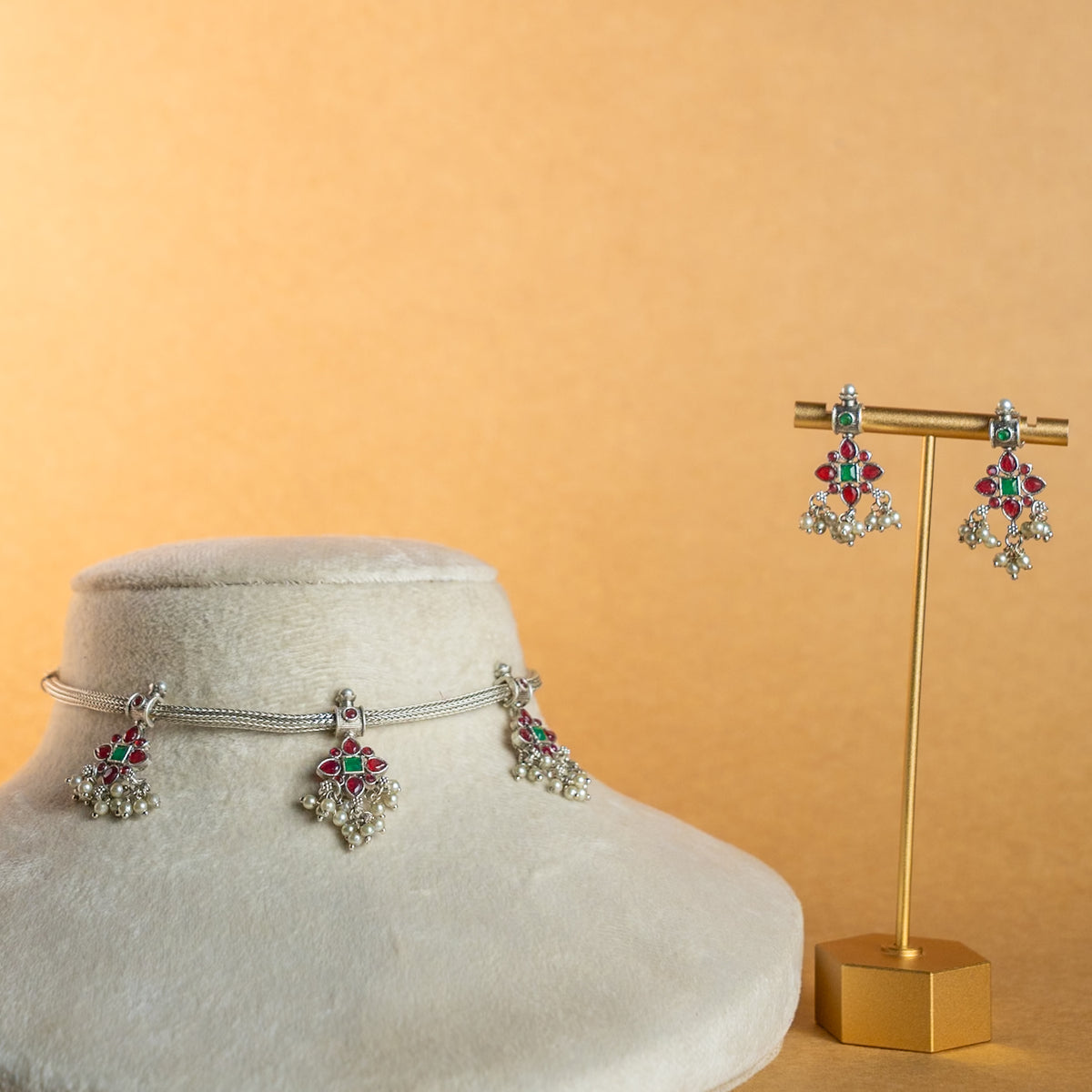 NIRANDHANA BIJOUX PREMIUM AND EXCLUSIVE SEMI HANDMADE CHOKER WITH EARRINGS CH365