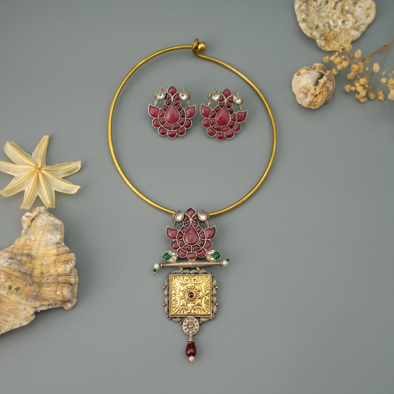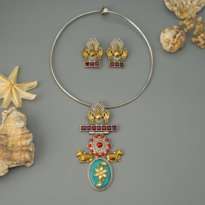 MUNA BIJOUX PREMIUM DUAL TONED HANDMADE NECKLACE/HASLI WITH EARRINGS CH502