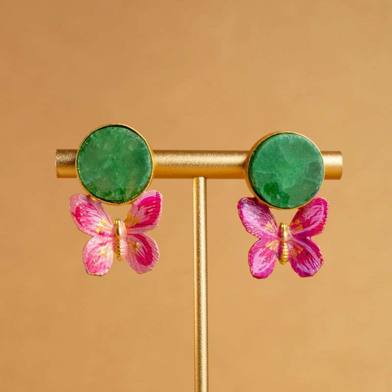 ARELY BIJOUX RAW STONE HANDMADE HANDPAINTED HASLI NECKPIECE WITH EARRINGS CH308