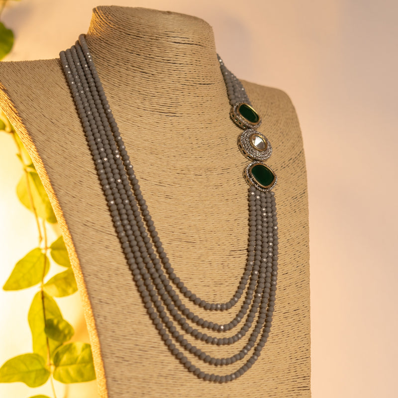 DISHIRA CRYSTAL HANDMADE MALA WITH EARRING ML10