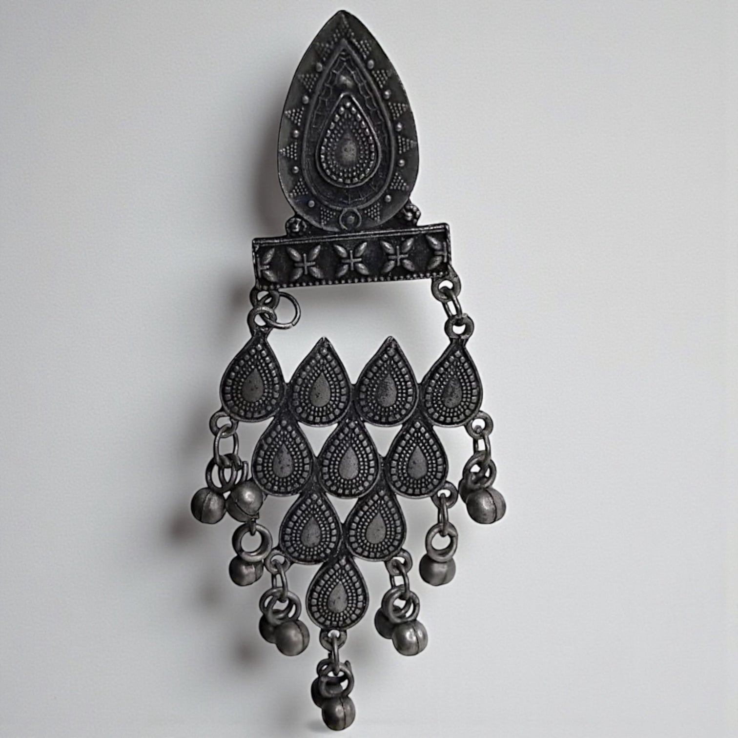 Discover the distinct appeal of the ATHSHA AFGHANI RAW AND RUSTIC AND VINTAGE DANGLERS AF61, artfully combining timeless heritage with modern elegance. These jhumkas showcase a refined vintage rustic look accentuated by a polished black alloy finish. Crafted from high-quality alloy metal with an antique treatment, they represent a harmonious fusion of traditional artistry and contemporary design, providing a subtle yet sophisticated addition to your jewelry repertoire.