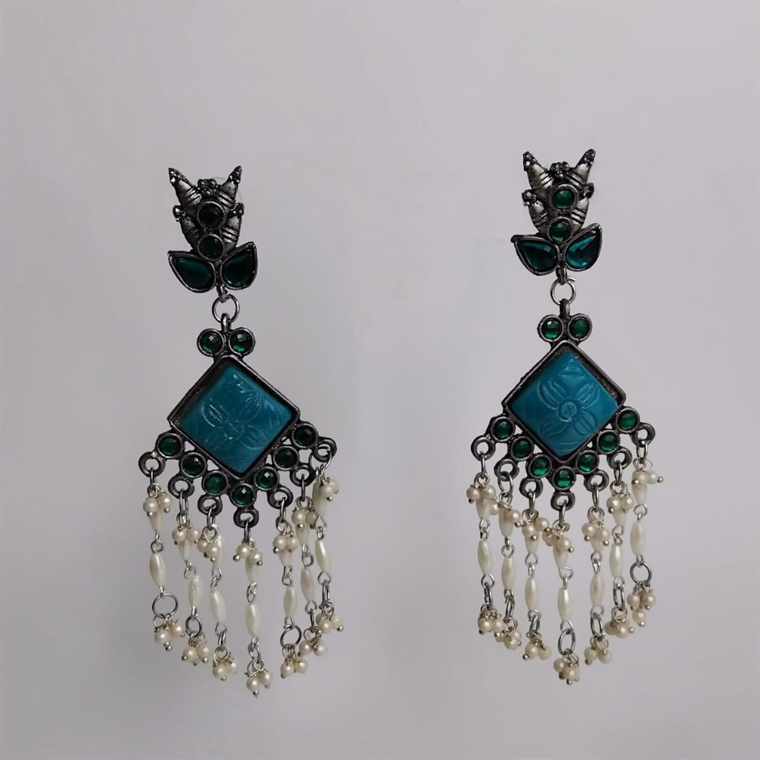 Elevate your style with the DHANU AFGHANI RAW AND RUSTIC AND VINTAGE DANGLERS AF67, combining timeless elegance with contemporary design. Made from high-quality alloy metal and finished with an antique black polish, these danglers reflect skilled artistry. They impart a sophisticated vintage appeal and rustic heritage, perfect for refining any outfit..
