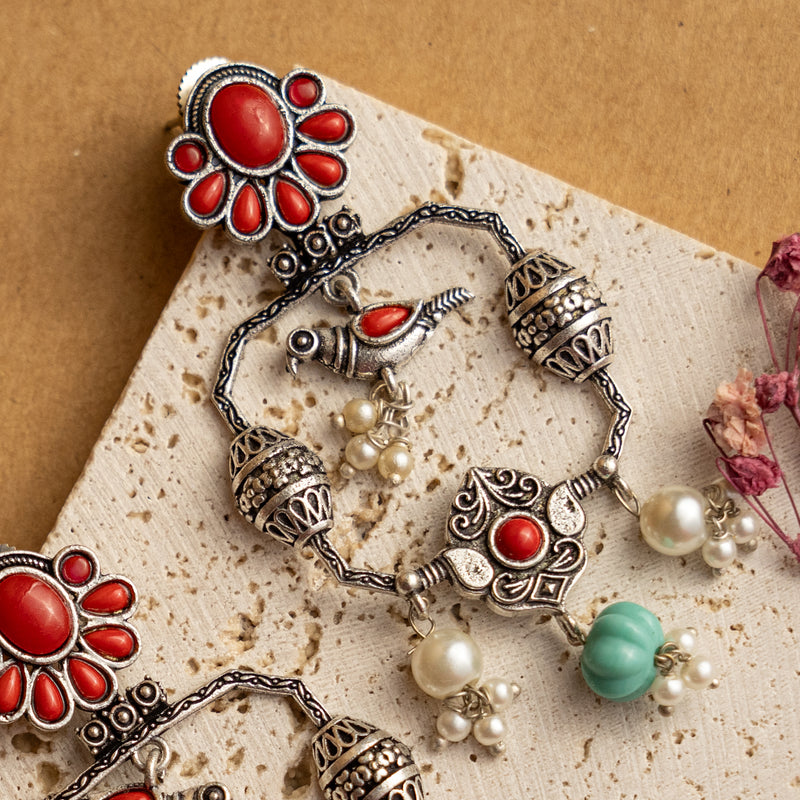 NIRA FAUX SILVER SEMI HANDMAD DANGLAR EARRINGS ER677