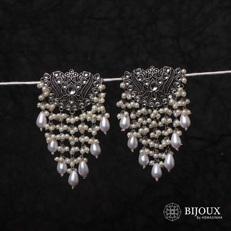 REEMA SILVER LOOK ALIKE RAW AND RUSTIC ANTIQUE SEMI HANDMADE EARRINGS ER437