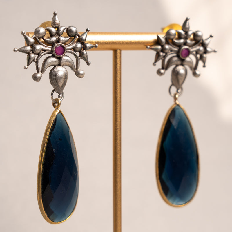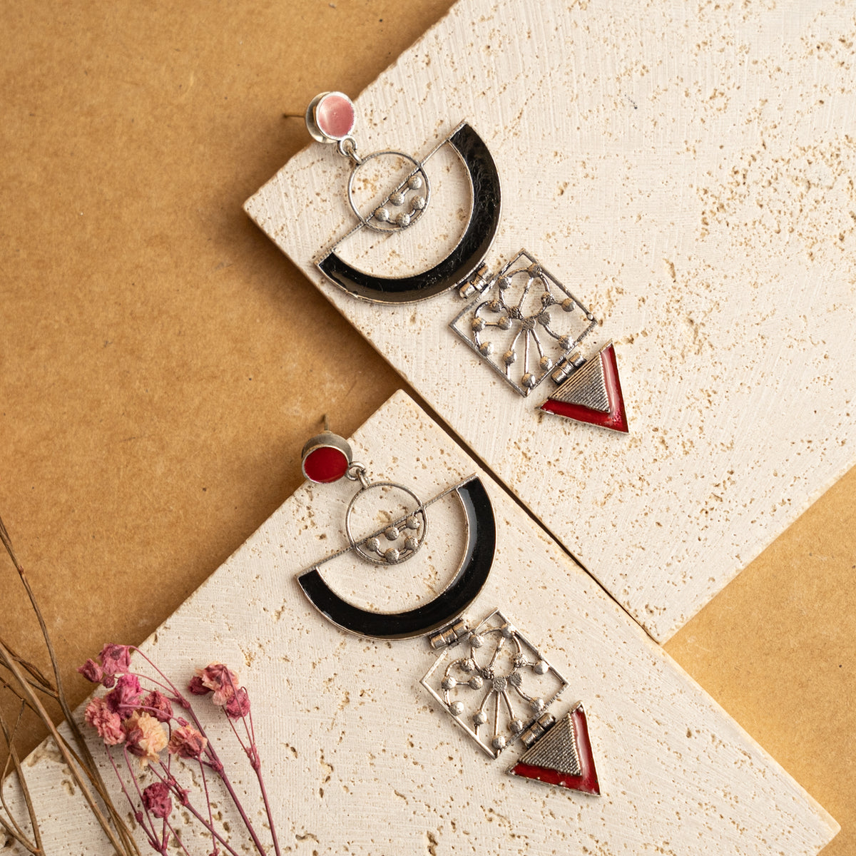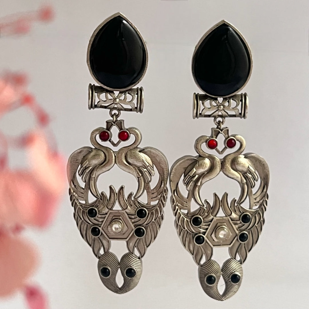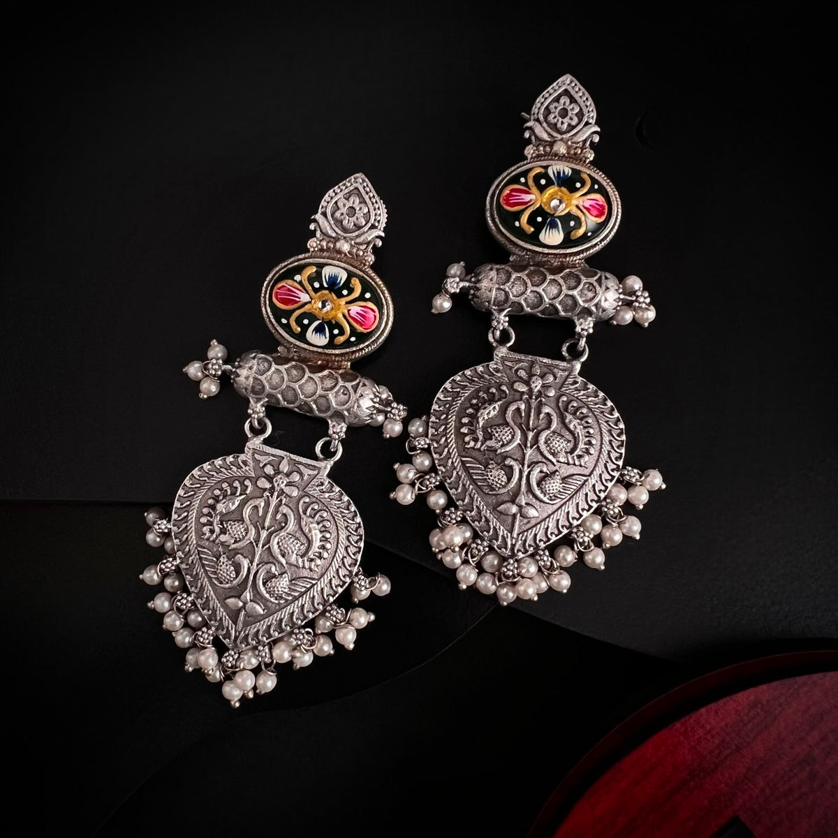 NEEPA FAUX SILVER SEMI HANDMADE HAND PAINTED DANGLER/ EARRINGS ER645