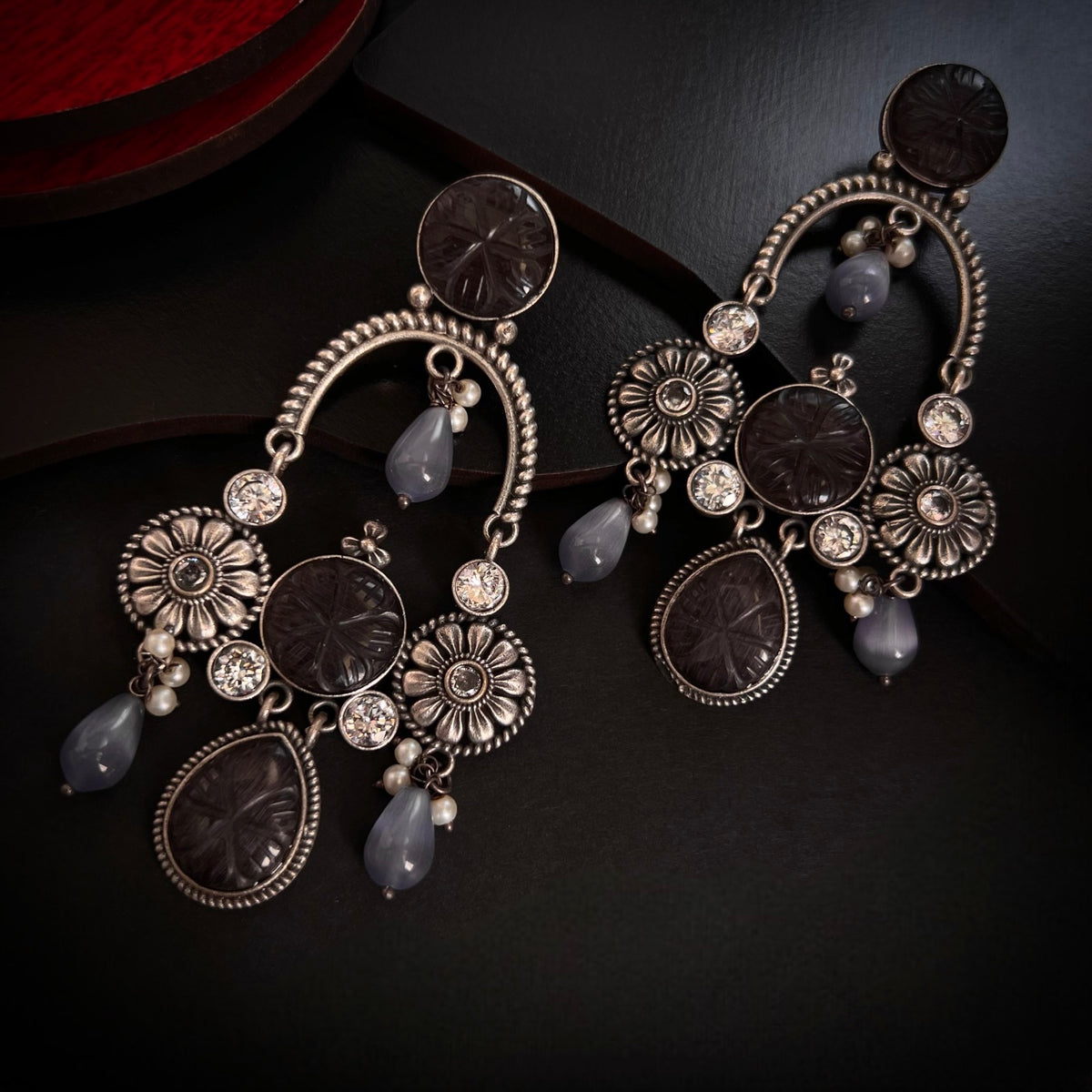 LUNA FAUX SILVER SEMI HANDMADE CARVING STONE EARRINGS ER644