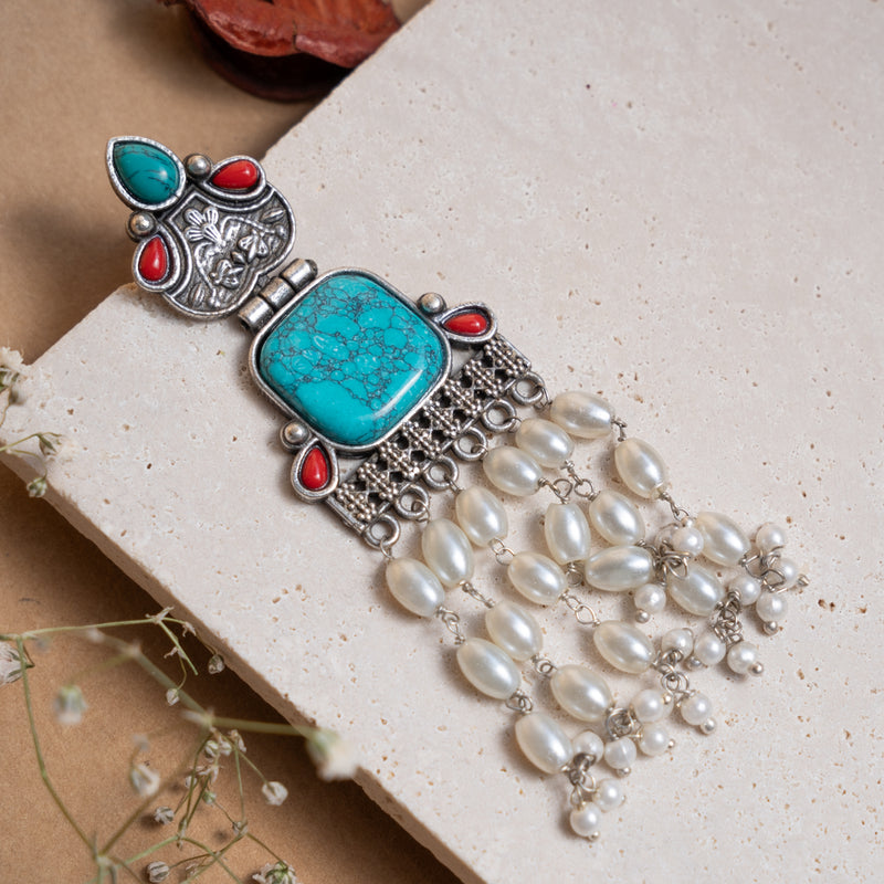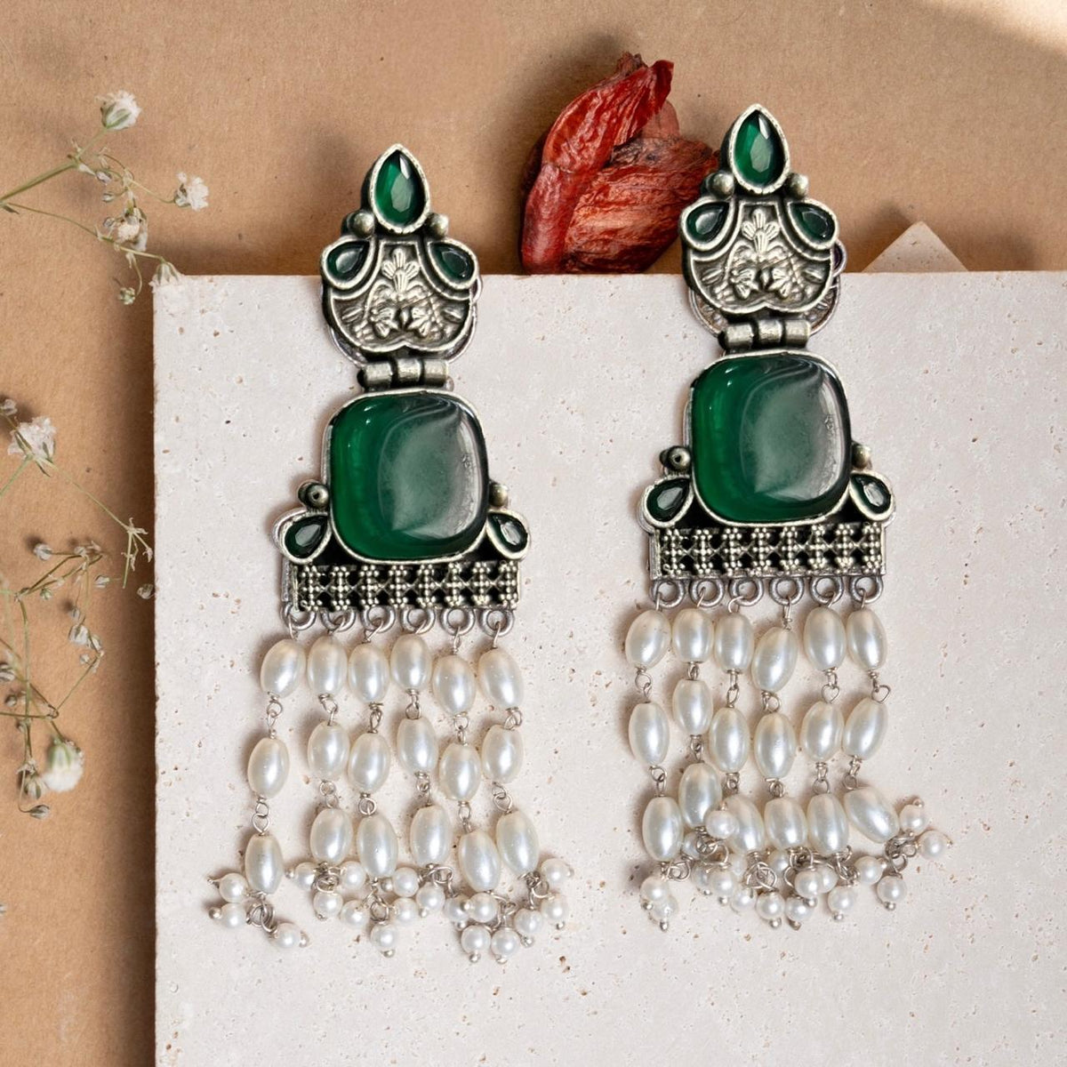 CAROLINE FAUX SILVER SEMI HANDMADE ANTIQUE EARRINGS ER870