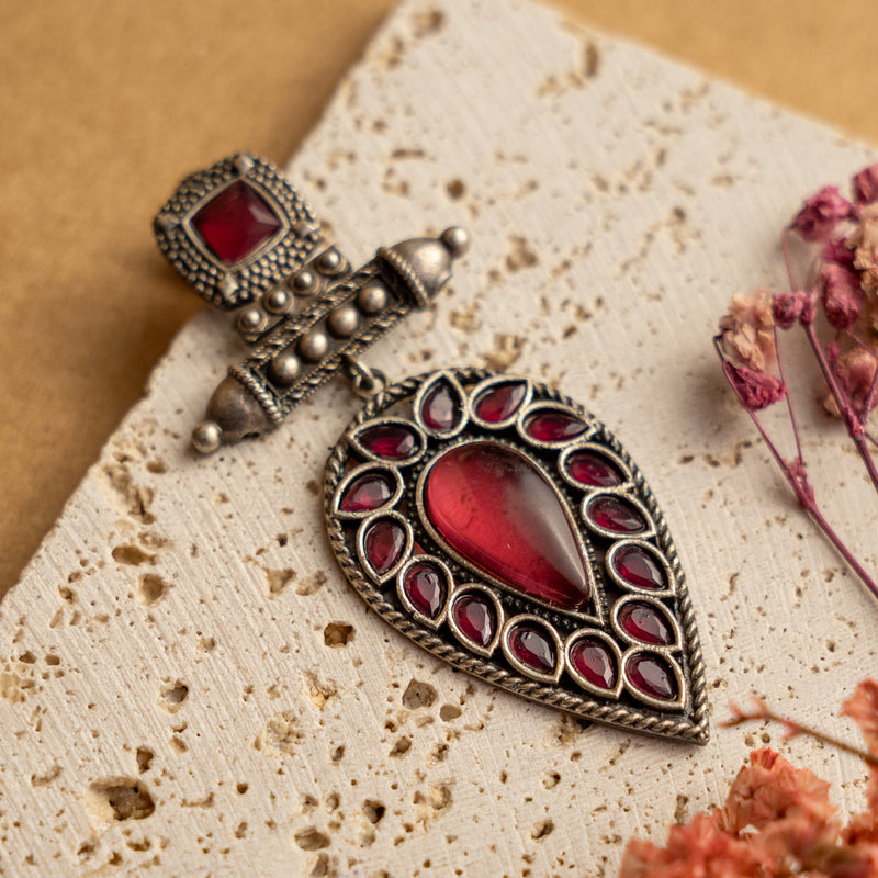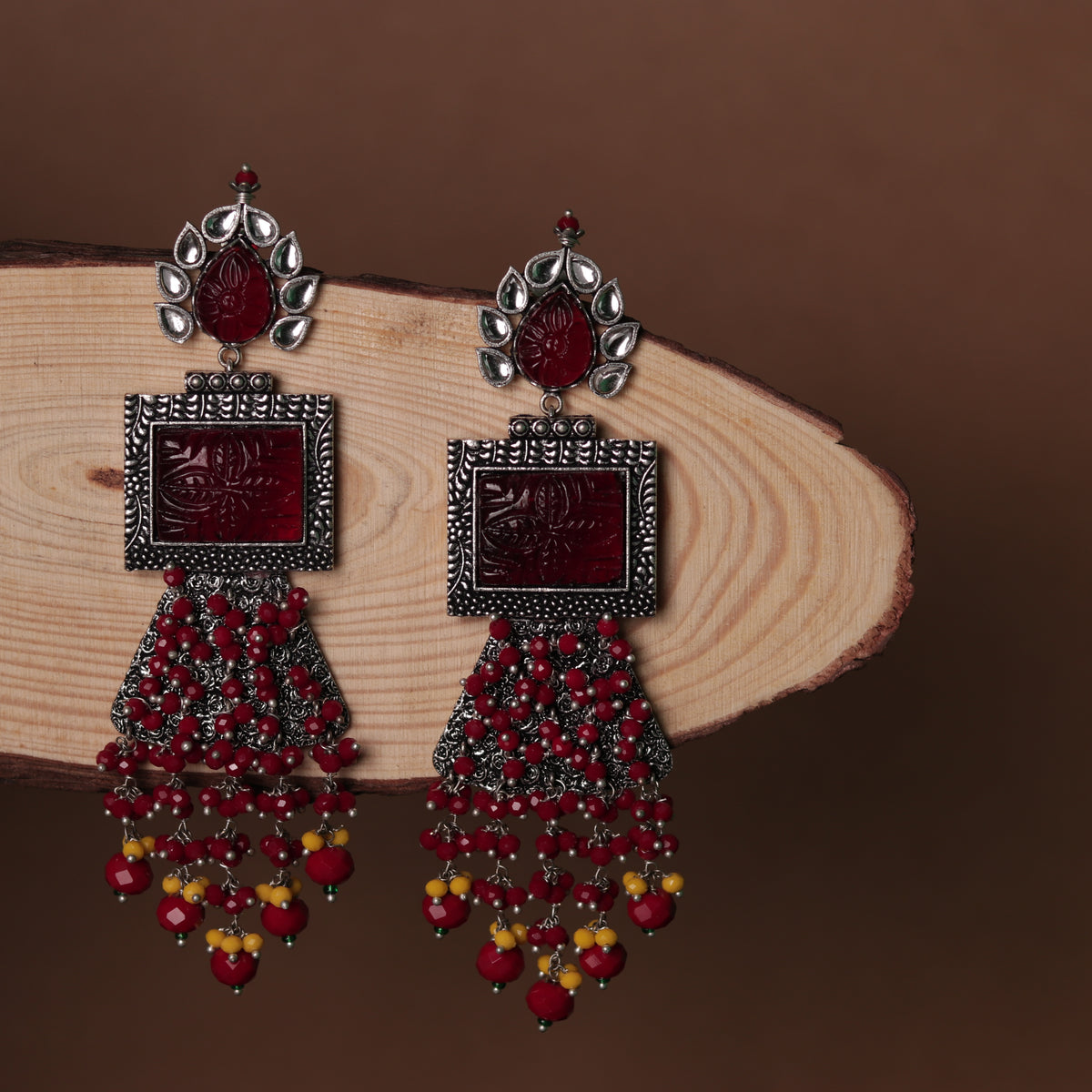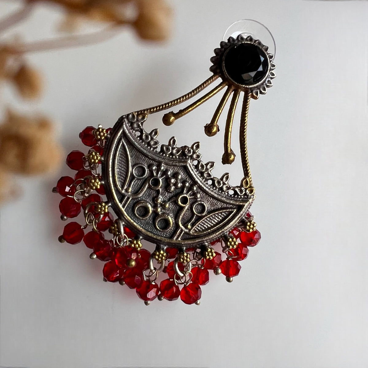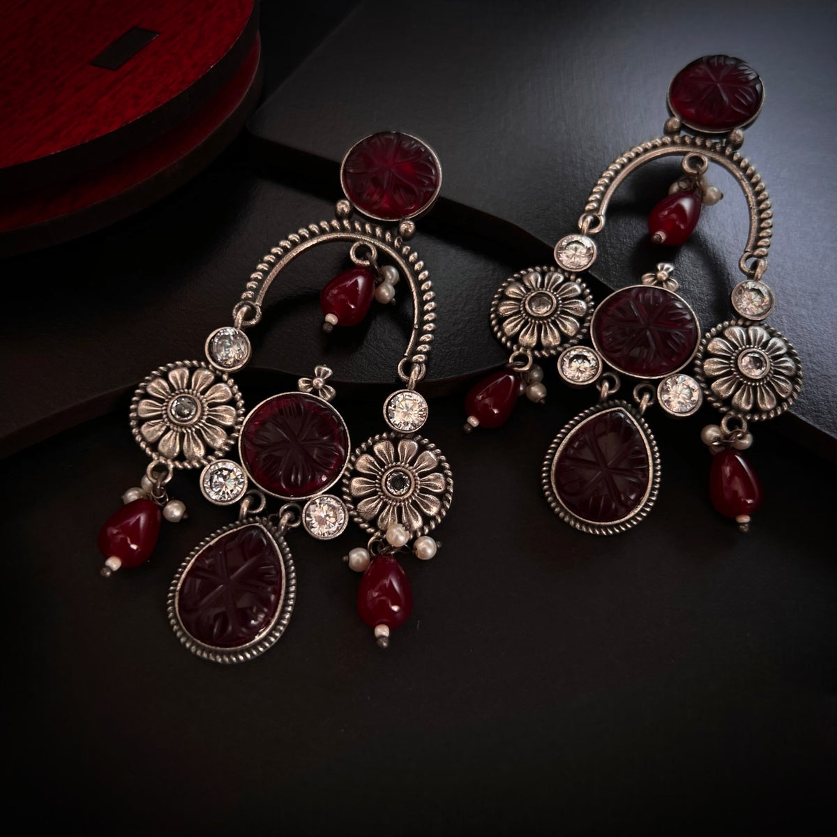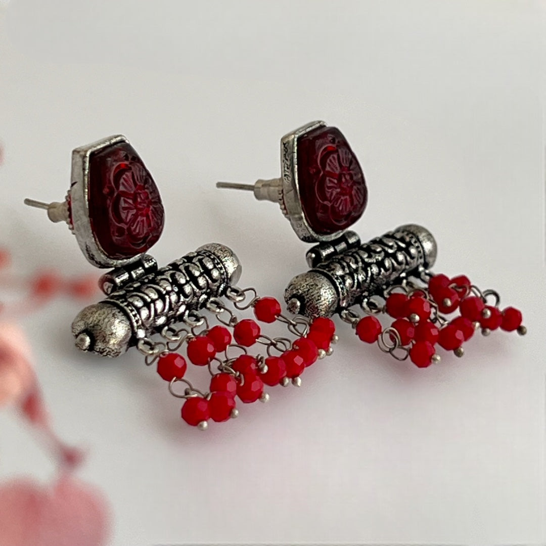 CORAL CARVINGS SEMI HANDMADE OXIDIZED EARRINGS ER168