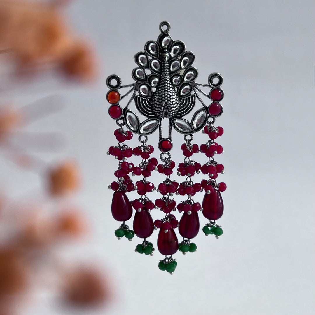 PAVO PEACOCK SEMI HANDMADE OXIDIZED BEADED EARRING ER119