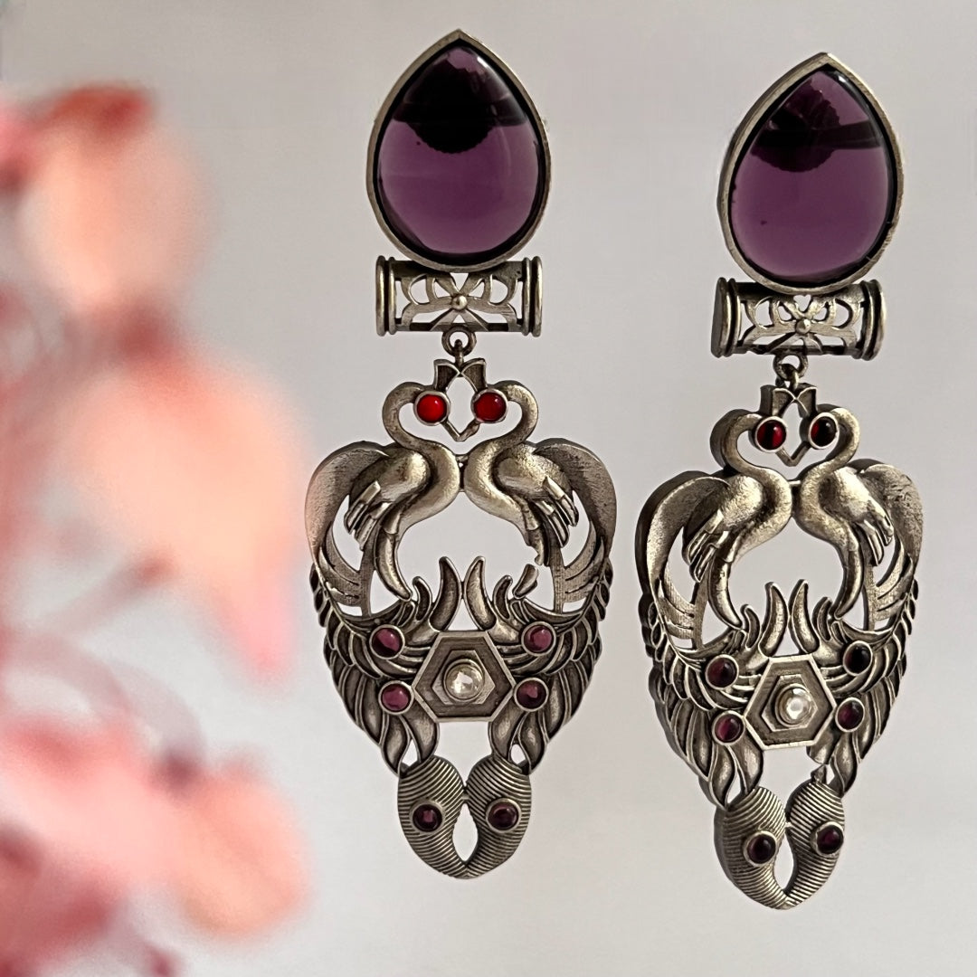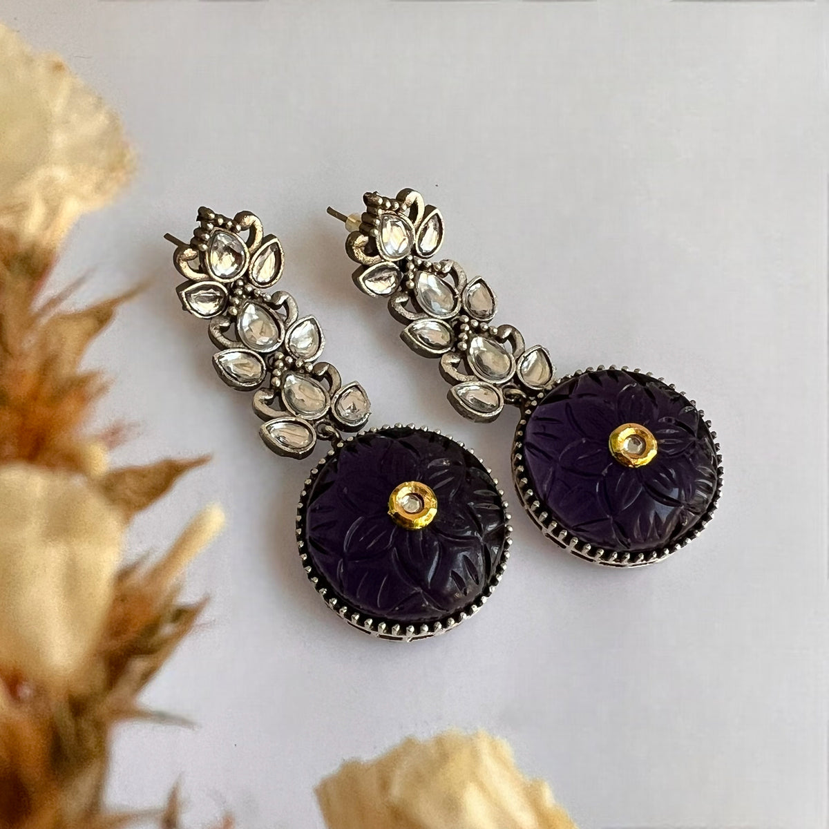 CORAL CARVINGS SEMI HANDMADE OXIDIZED EARRINGS ER168
