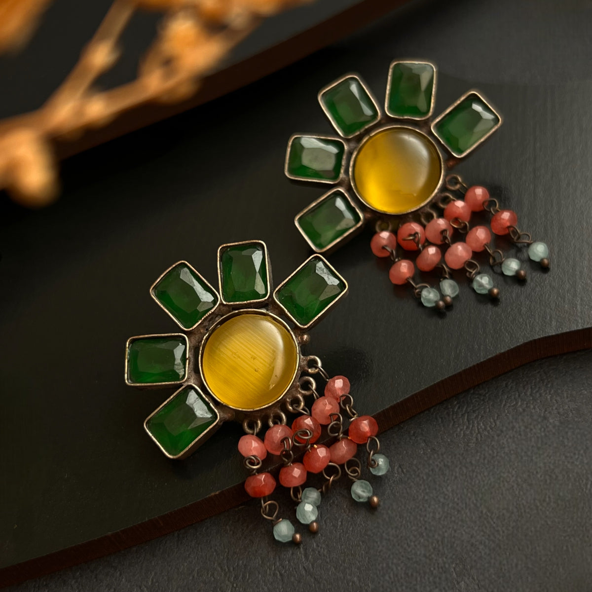 FLORA STONE FABRIC AND BEADS HANDMADE EARRING ER597