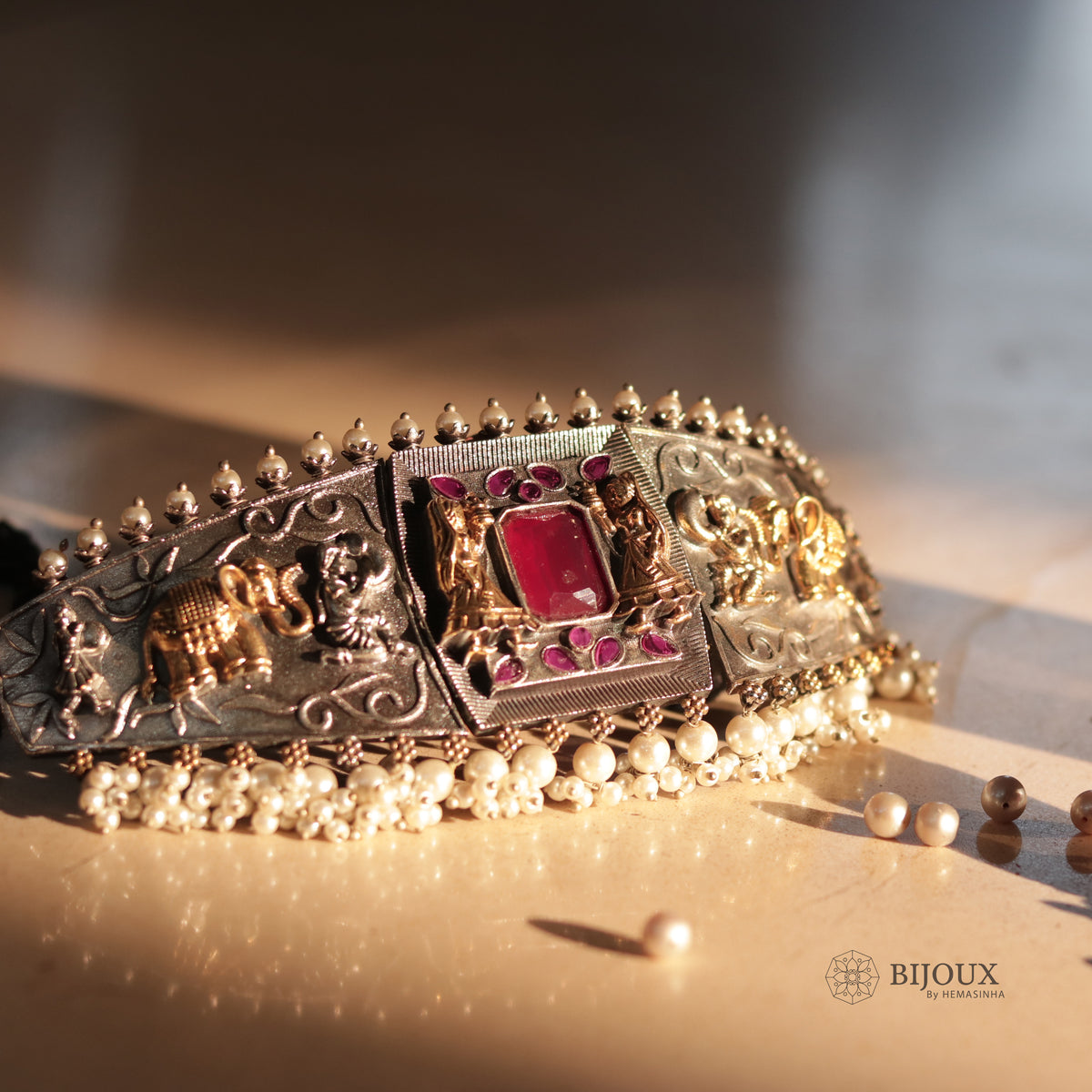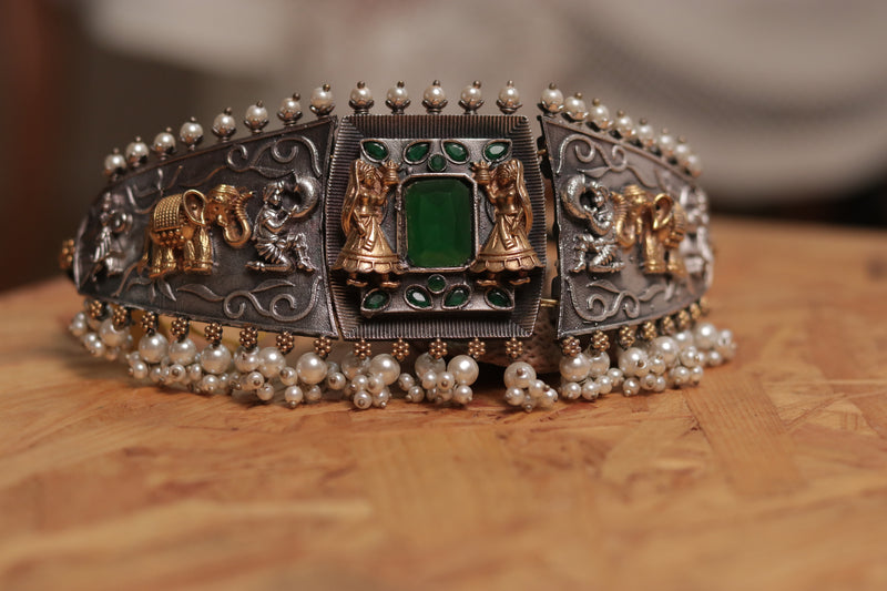 SUGIR BIJOUX PREMIUM DUAL TONED SEMI HANDMADE CHOKER WITH EARRINGS CH69