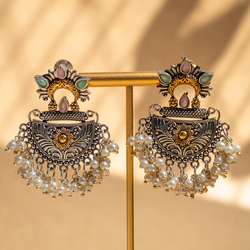 FRANCESCA DUAL TONE FAUX SILVER ANTIQUE SEMI HANDMADE EARRINGS ER779