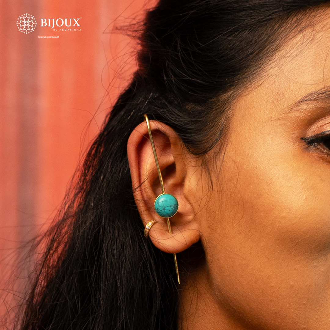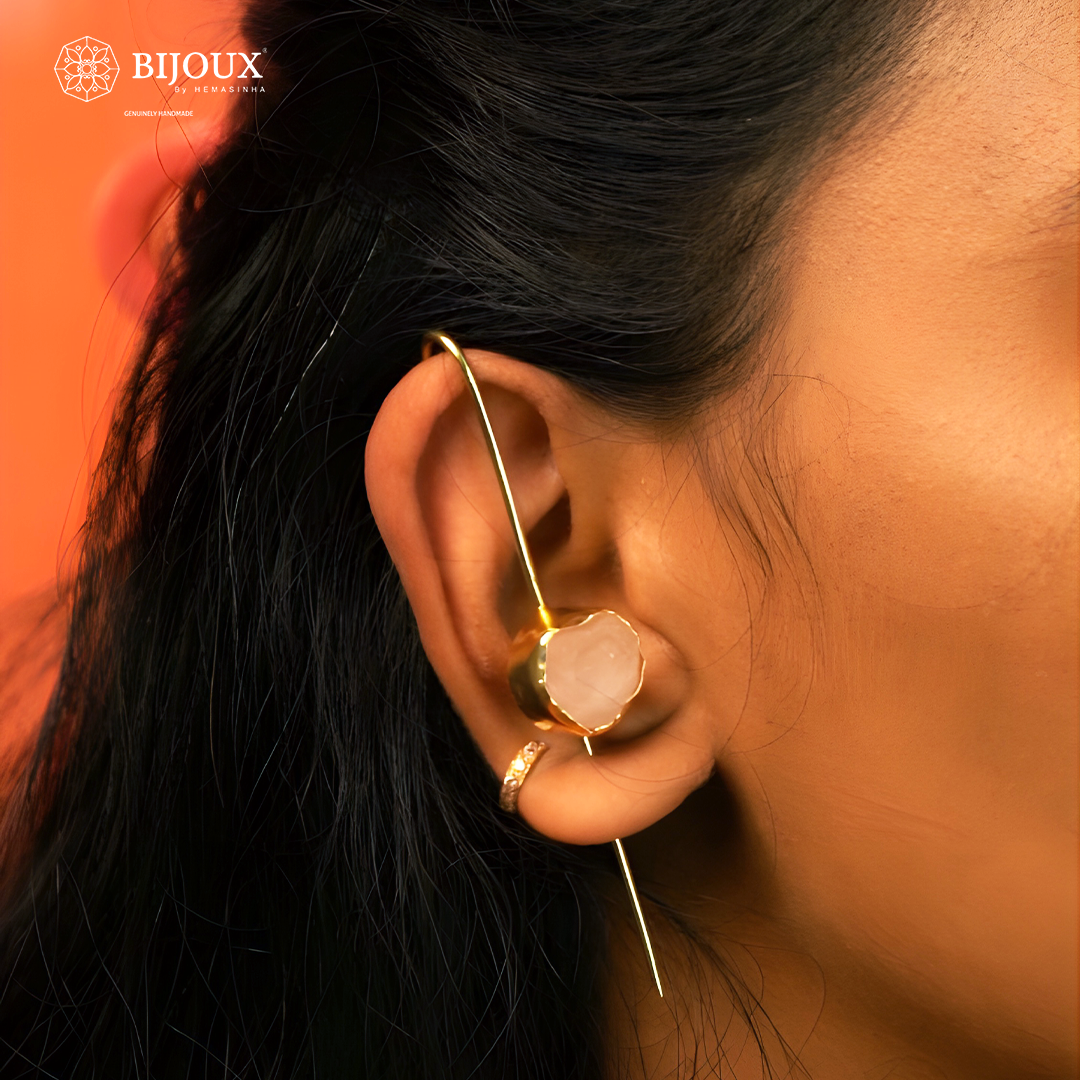 LUCY GOLD TONED RAW STONE HANDMADE EAR CUFF/EARRINGS EA27