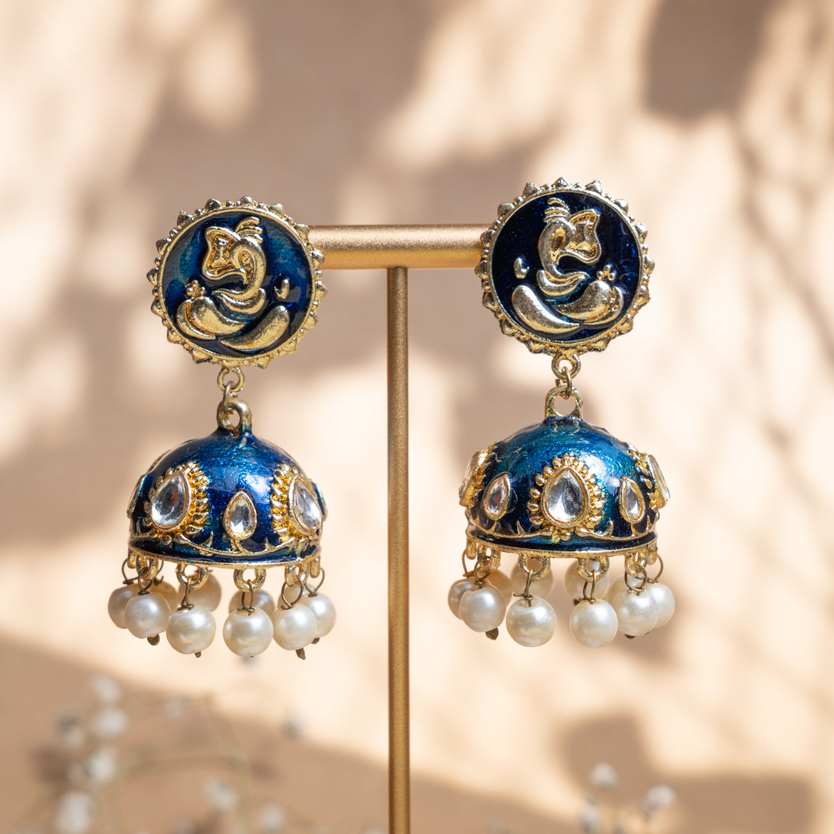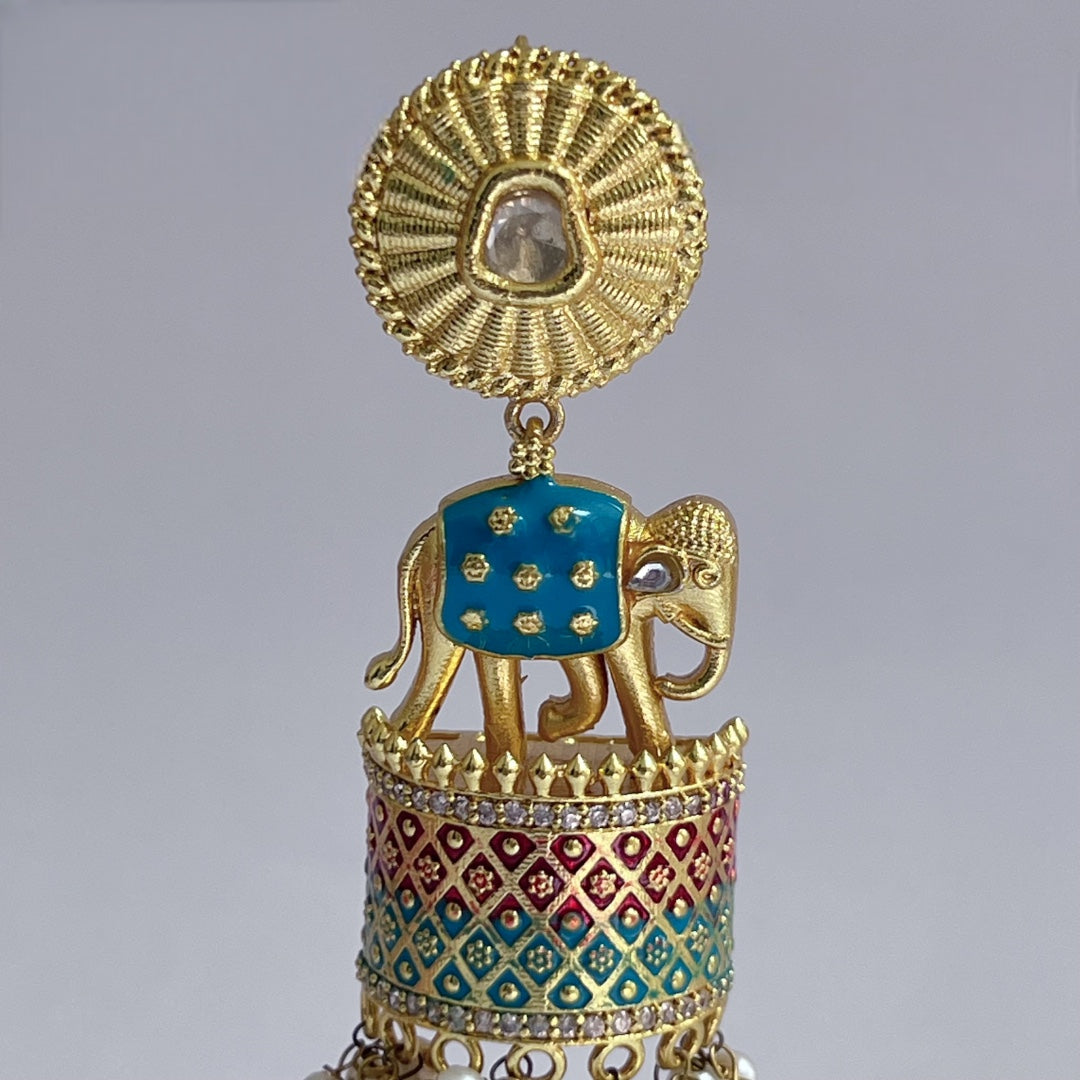OLIFANT POLKI STUDDED GRACEFUL JHUMKAS-HAND PAINTED-ER98