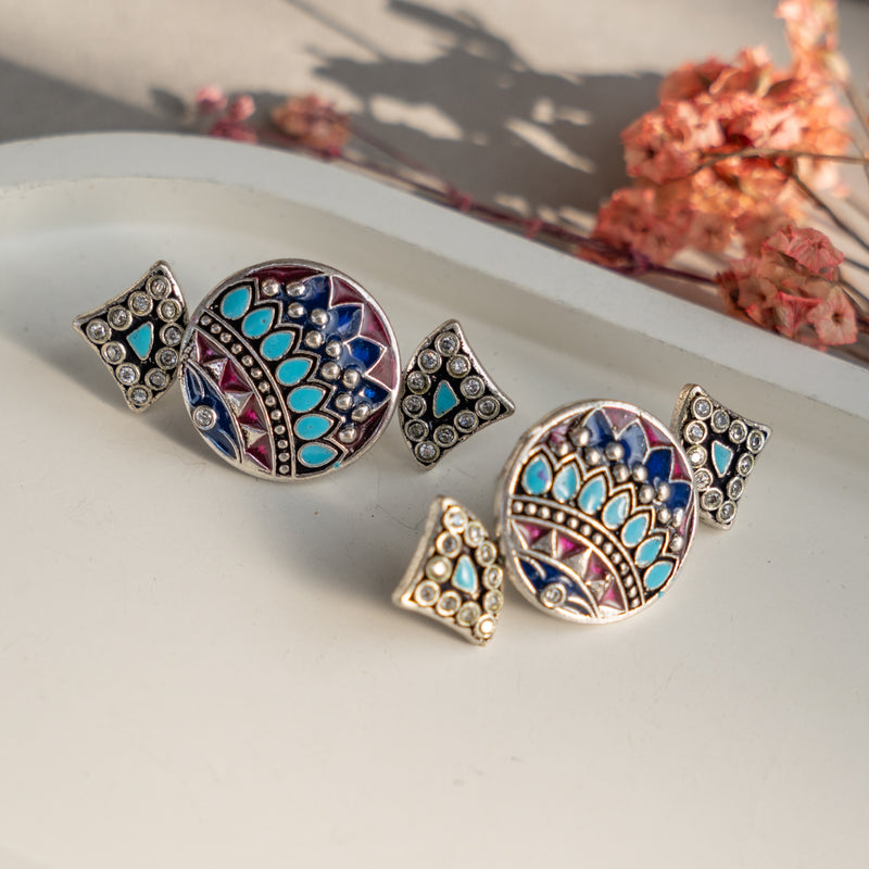 ELODIE OXIDIZED SEMI HANDMADE EARRINGS/JUMBO STUDS ER710