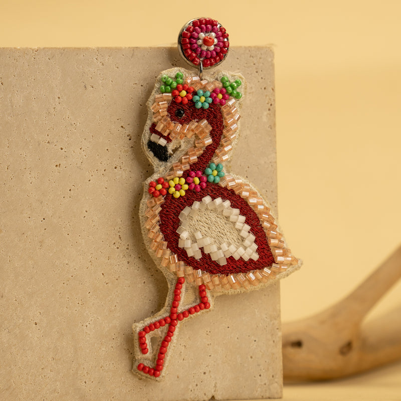 FLAMINGO DANSE FABRIC AND BEADS HANDMADE EARRING ER474