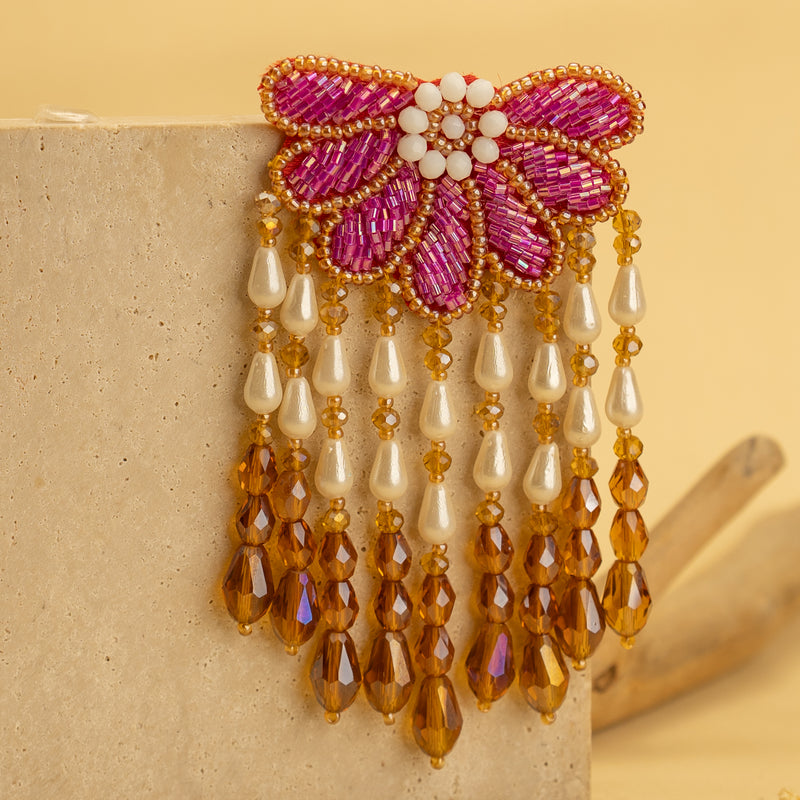 PAPILLON FABRIC AND BEADS HANDMADE AND HAND STITCHED EARRING ER483