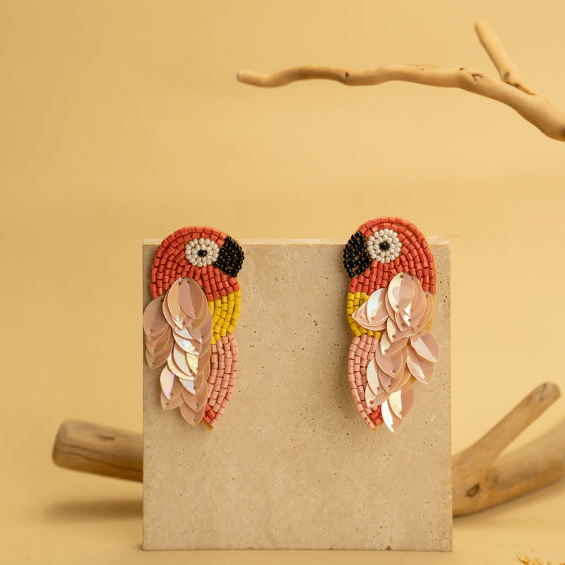 PERROQUET FABRIC AND BEADS HANDMADE EARRING ER480