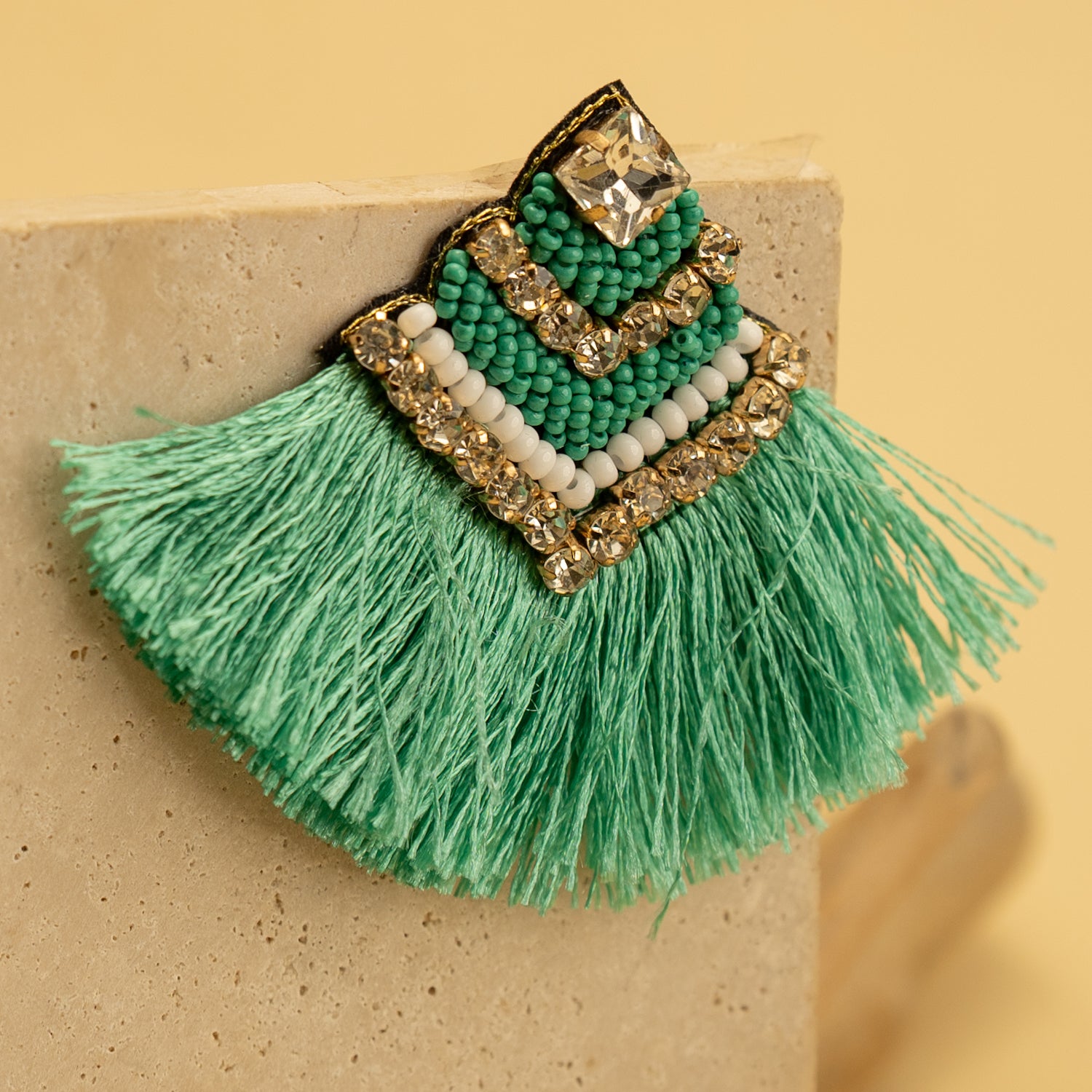 Discover the perfect fusion of classic and contemporary elements with the FEATHERY FEATHER FABRIC AND BEADS HANDMADE EARRING. This exquisite accessory displays an impeccable marriage between dynamic fabric patterns and thoughtfully selected beads, creating a one-of-a-kind piece that embodies the essence of modern jewelry. Painstakingly handcrafted with precision and attention to detail, this timeless earring is an essential addition to any jewelry repertoire, seamlessly combining traditional and modern influences for a polished and elegant appearance.
