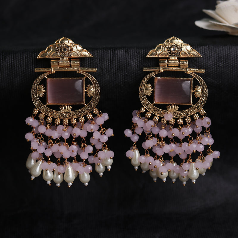 AMARA SEMIHANDMADE BEADED MONALISA GOLD-TONED DANGLER EARRING ER103