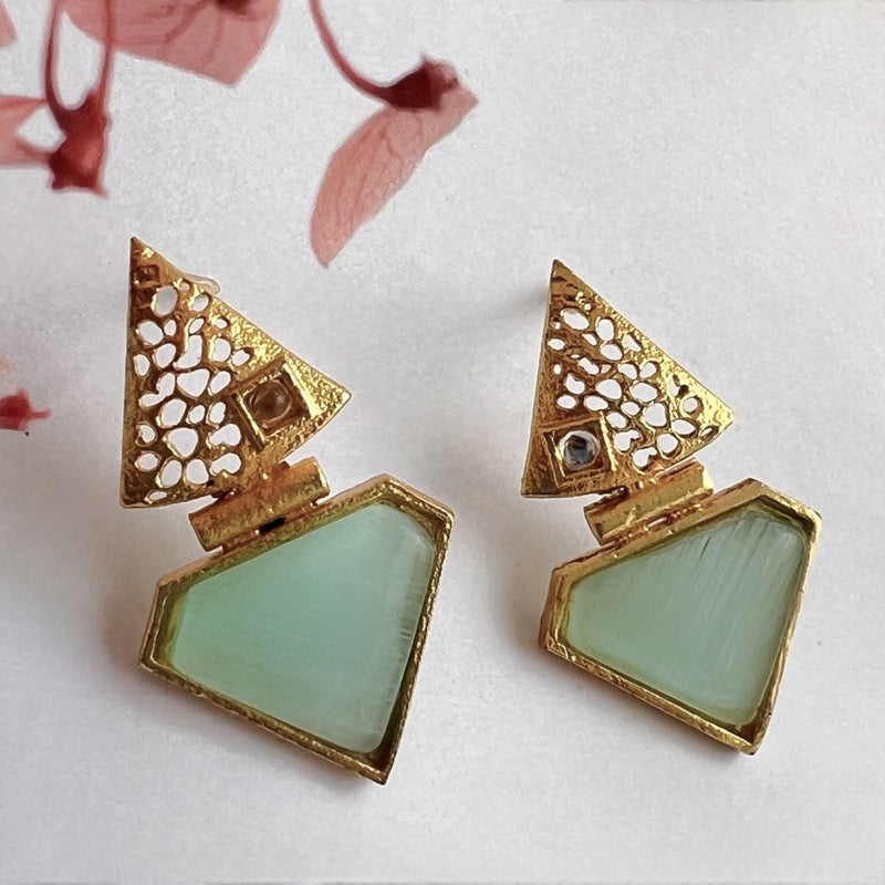 DIATANGLE GOLD TONED SEMI HANDMADE STUDS ER208