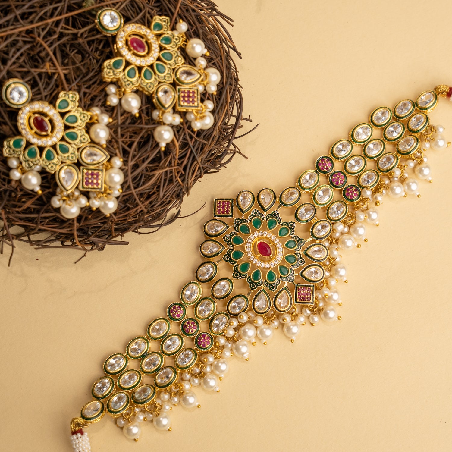 NIRANDHANA BIJOUX PREMIUM AND EXCLUSIVE SEMI HANDMADE CHOKER WITH EARRINGS CH365