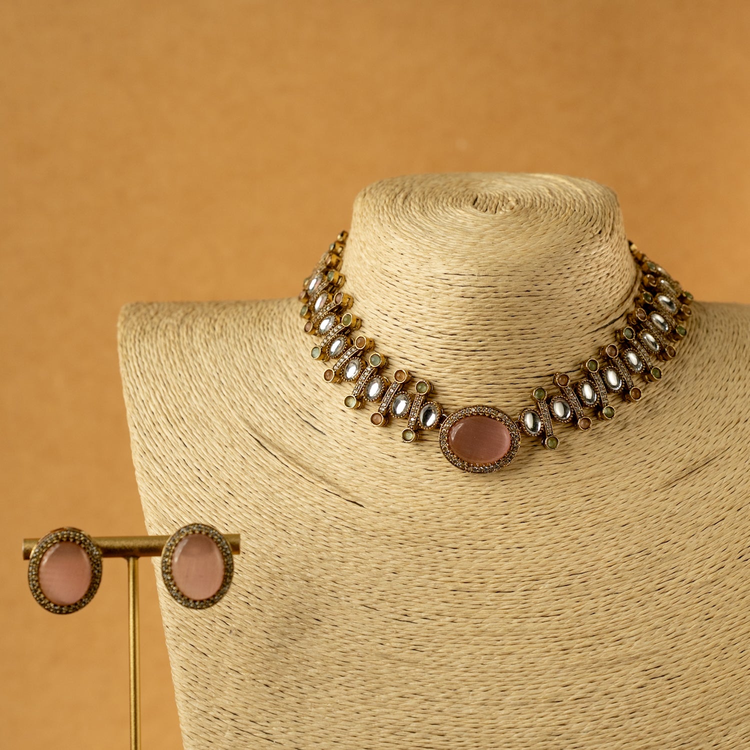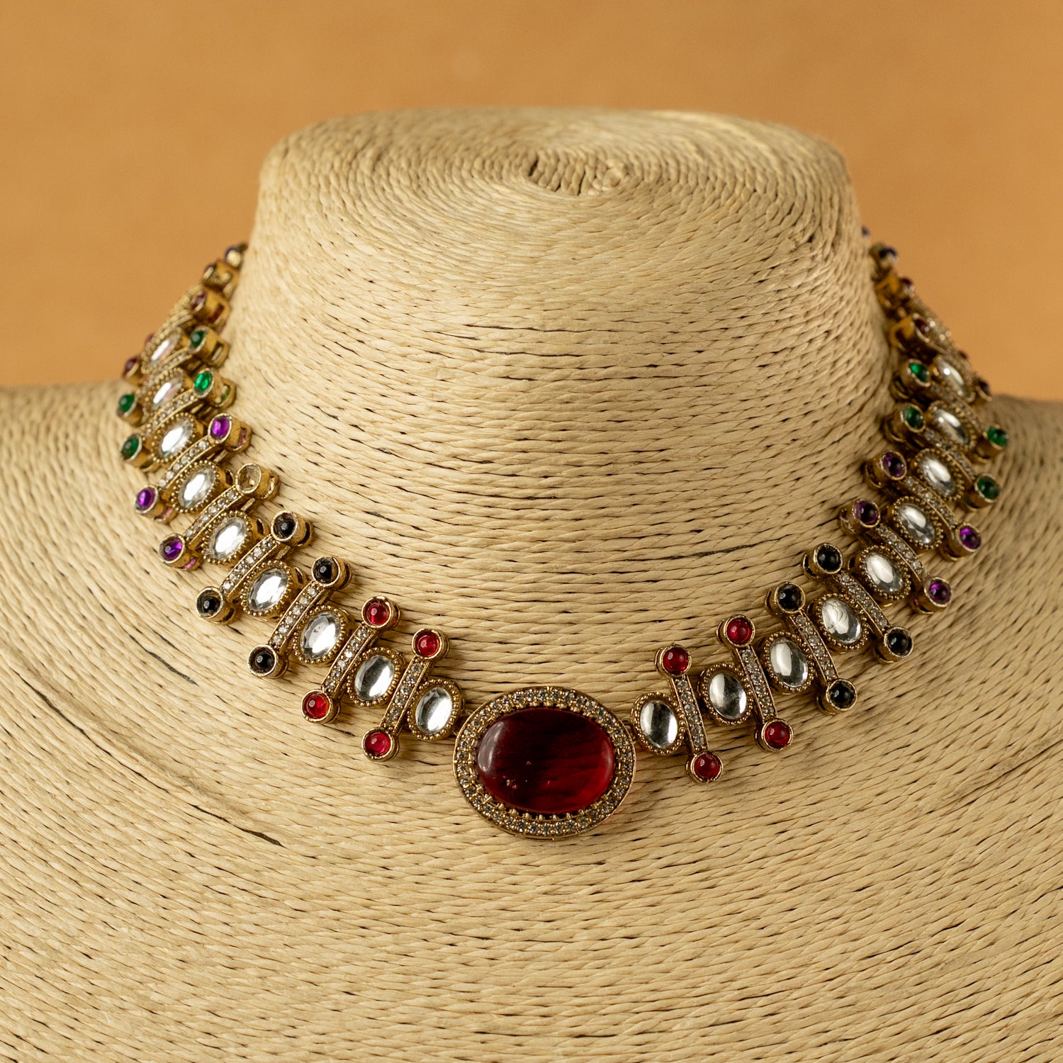 ZOHRA SEMI HANDMADE MONALISA STONE NECKPIECE/NECKLACE EARRINGS NL325