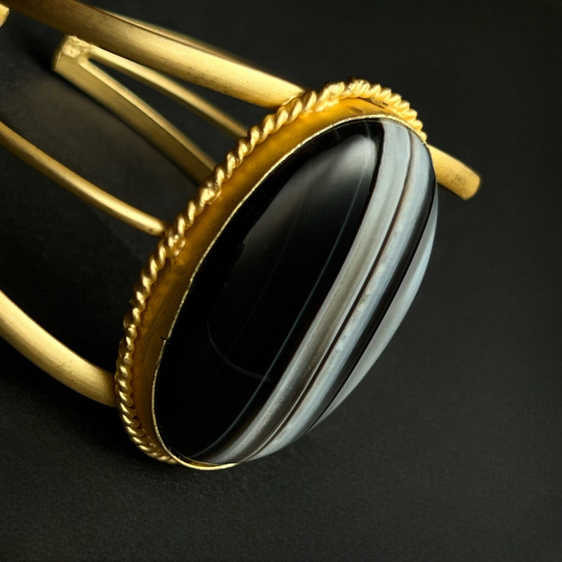 MIRALA HAND HAMMERED AND HANDMADE GOLD TONED RAW STONE CLASSIC BRACELET BR29